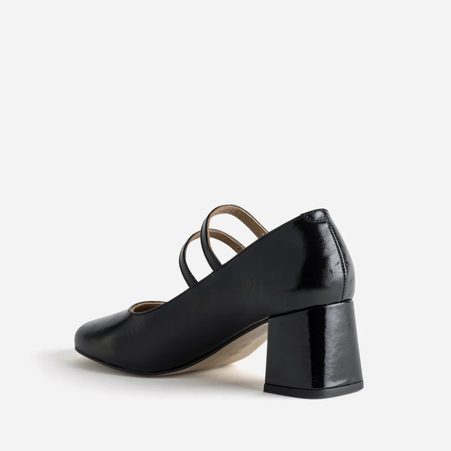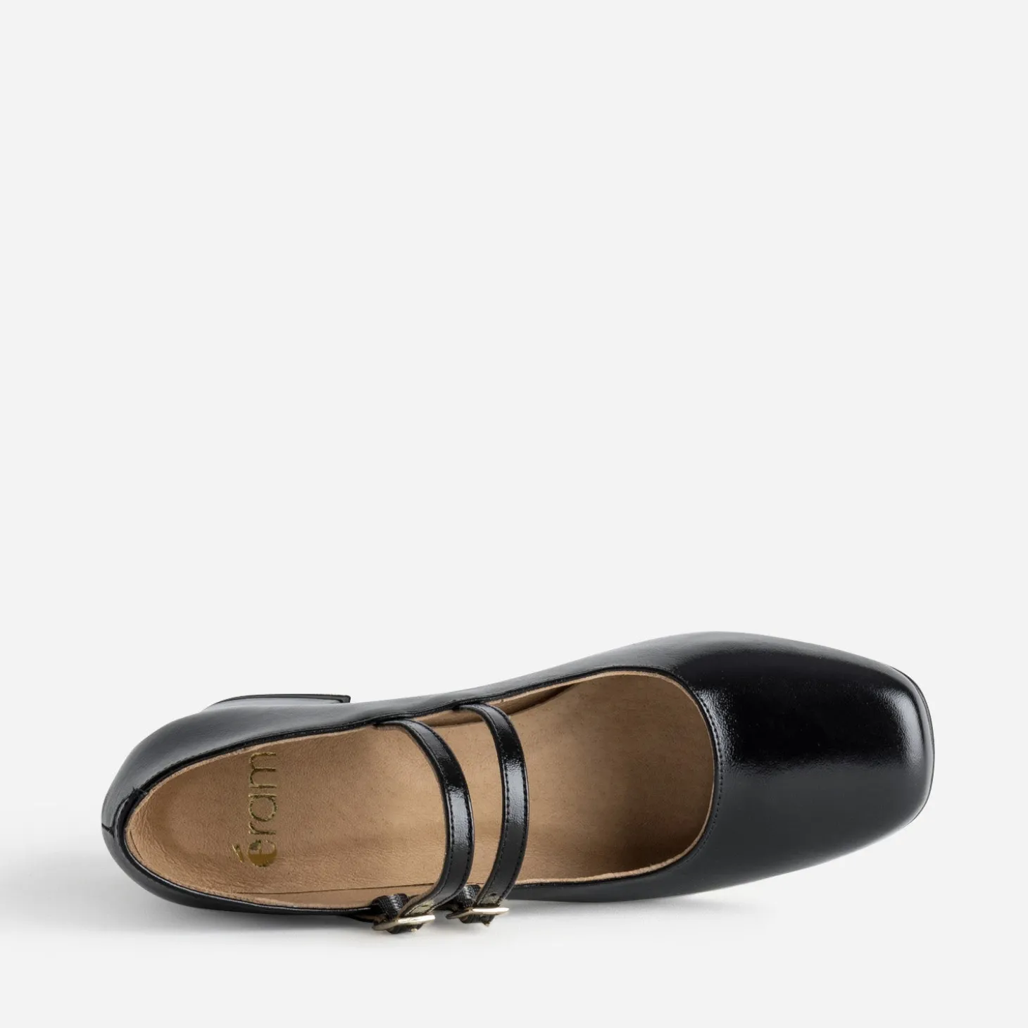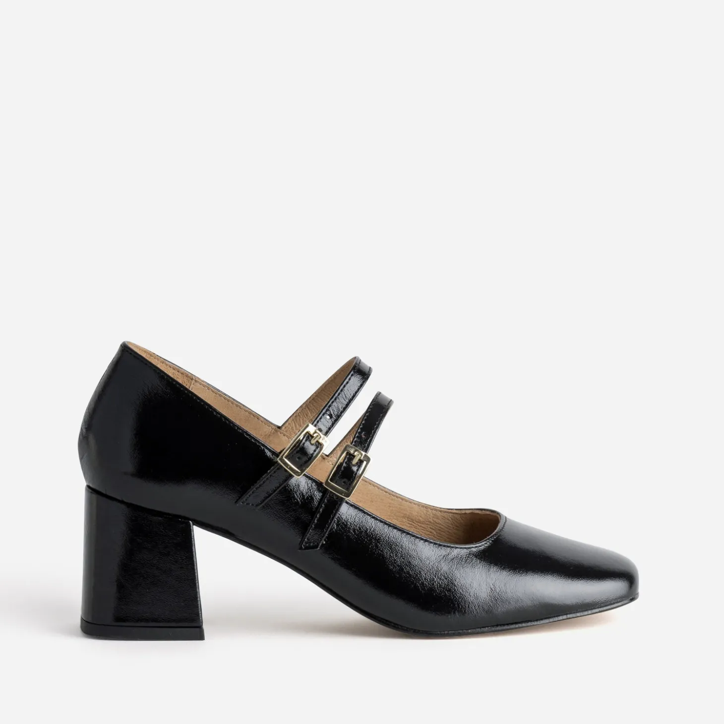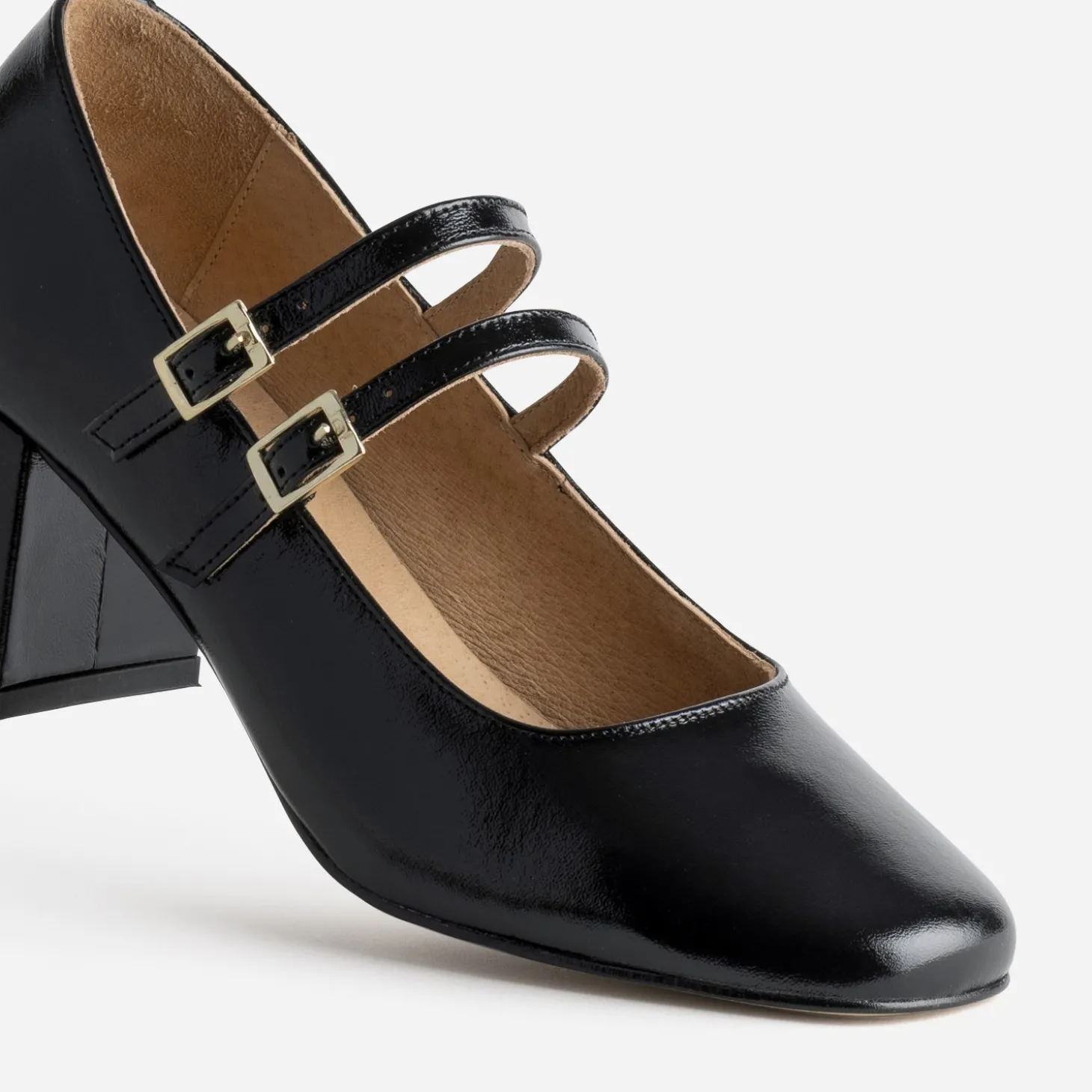La mode, un éternel recommencement qui se confirme par le retour en force de la babies. Confectionnée en cuir noir, elle s’autorise une finition glacée jusqu’à la pointe de son talon carré, légèrement flare. Le pied est maintenu par deux fines brides parallèles, fermées par des boucles. Un modèle idéal, pour twister une blouse et un jean cropped, dans un esprit rétro.