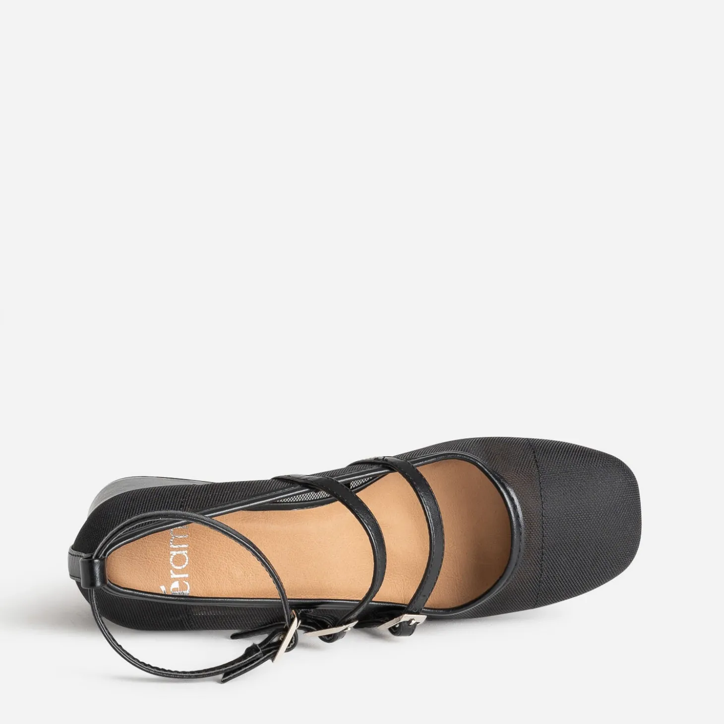Faites un appel du pied… au printemps ! Optez pour la babies, revisitée dans une matière synthétique résille noire et maintenue par deux brides dessus et une bride autour de la cheville. Elle est montée sur talon flare de 5,5 cm. Un modèle à décaler avec un top en dentelle et un pantalon fluide cropped.