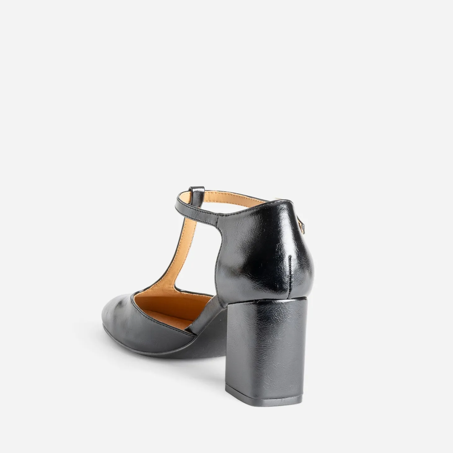 Bout et talon carrés, coloris noir et finition glacée : impossible de résister devant ce babies forme salomé. Identifiable à sa bride en T, il sublime le pied et offre, aux tenues féminines, un twist rétro chic. Blouse lavallière écrue et jupe crayon gris anthracite pour aller au bureau, pull à encolure V et pantalon flare en total look monochrome bleu marine ou bordeaux pour sortir entre amies, son atout, c’est indiscutablement, sa grande adaptabilité et sa semelle première moussée.
