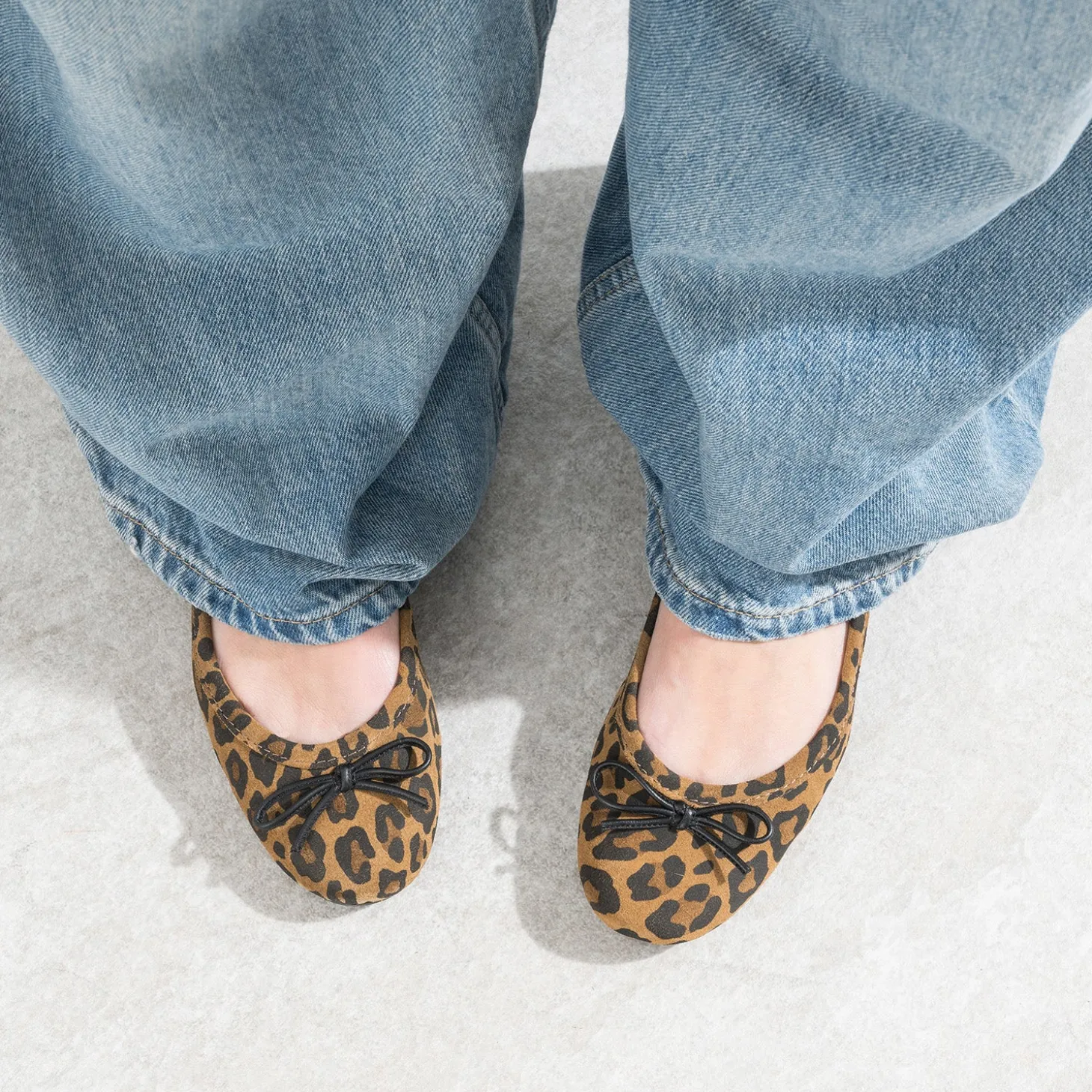 Ballerine camel cuir velours motif léopard