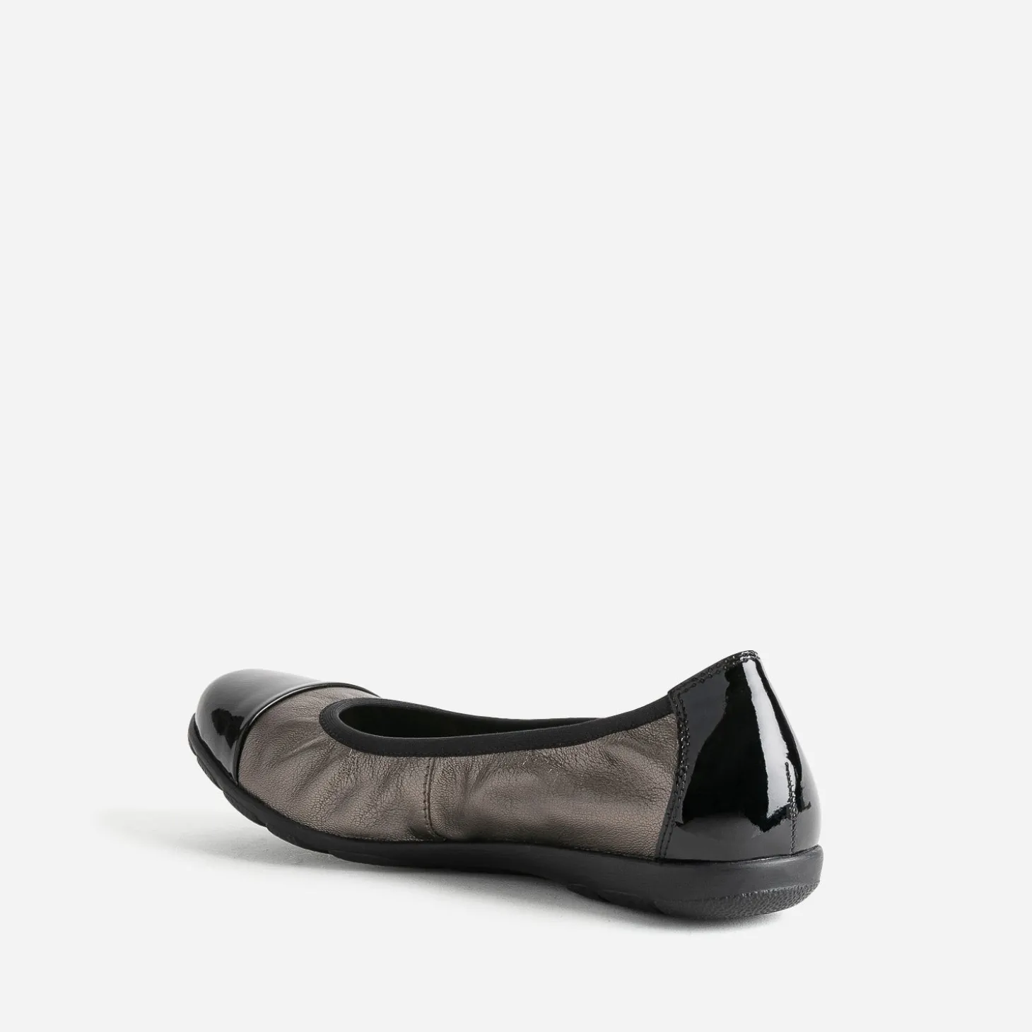 Laissez-vous séduire par la souplesse incroyable de son cuir souple non doublé, animé d’une finition métallisée. La semelle première en cuir est dotée de la technologie ‘onAIR’, garantissant un meilleur amorti et une aération optimale de la chaussure. Coloris bronze, elle est finalisée par un bout et un contrefort noir verni, dans une belle harmonie.