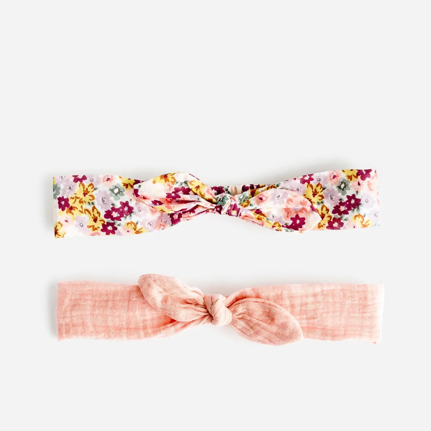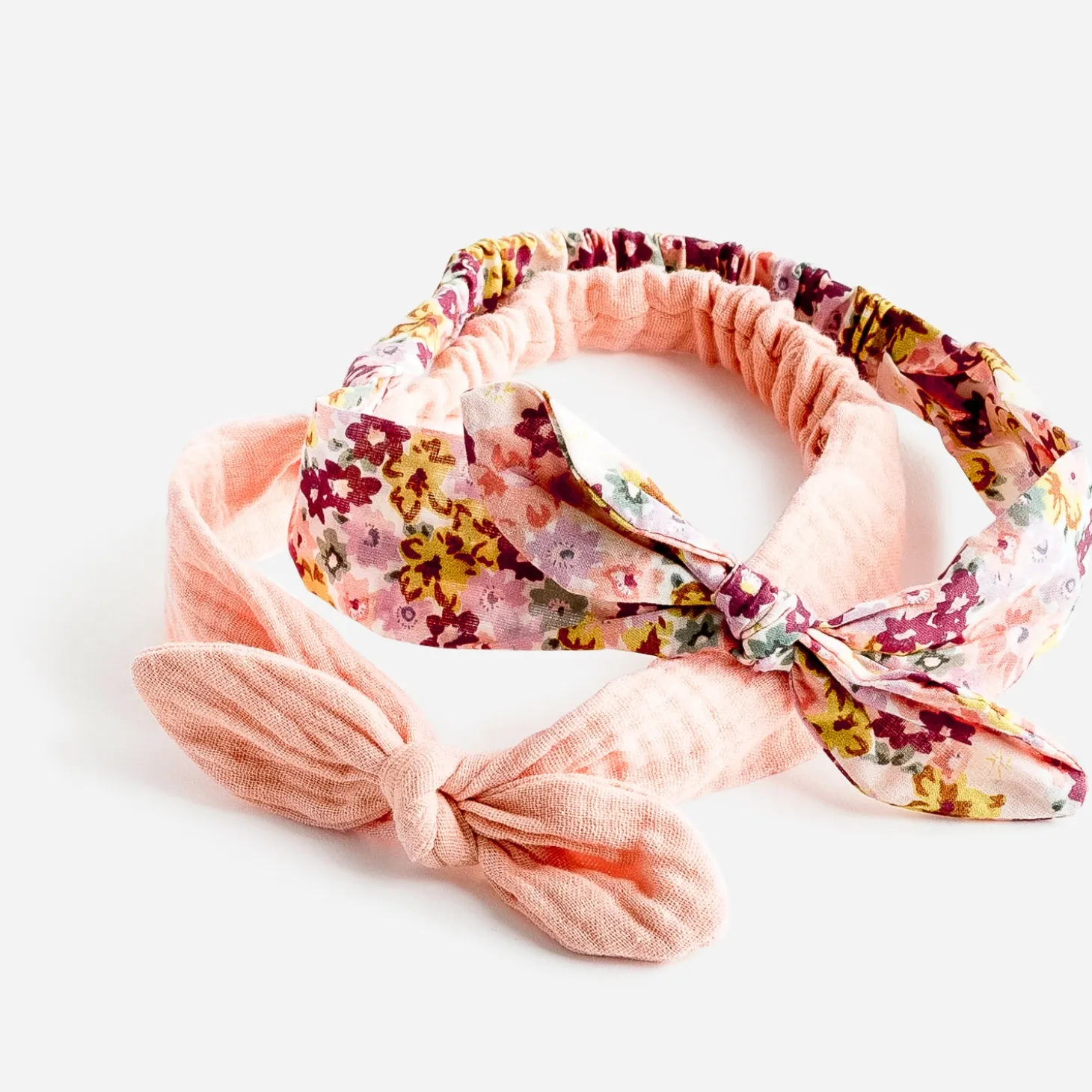 Uni corail ou imprimé fleurs : voici deux bandeaux à nœuds, parfaits pour retenir les cheveux des jeunes filles. Ils sont dotés d’un nœud, à placer sur le dessus de la tête, et d’un élastique, à placer dans la nuque, pour un maximum de confort.