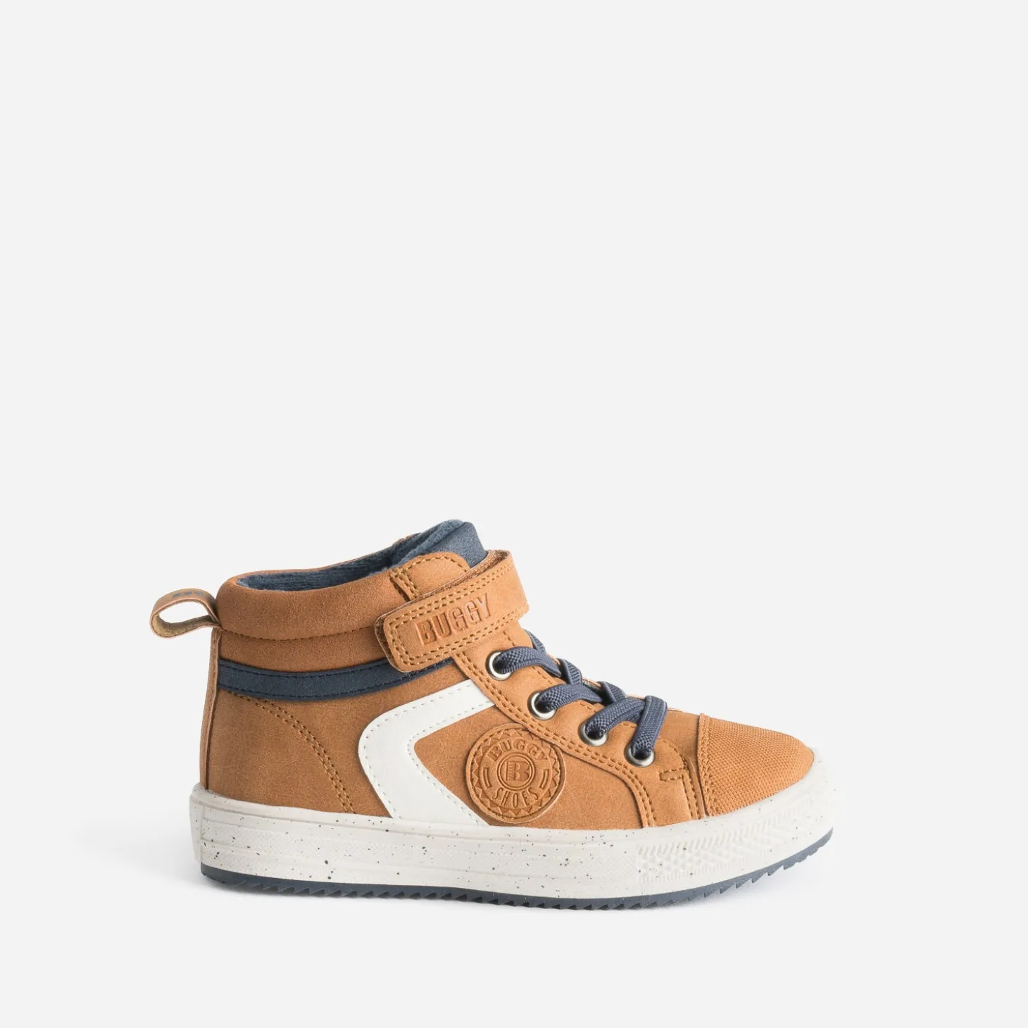 Le rêve d’un enfant, c’est une basket stylée, confortable, qui s’enfile facilement. En matière synthétique, elle se décline en coloris camel, avec découpes écrues et bleu marine. Elle se ferme par un lacet élastiqué et par un scratch. Zoom sur la semelle tachetée et crantée, pour une meilleure adhérence. Sweat, jeans, c’est l’allié de toutes ses tenues du quotidien.