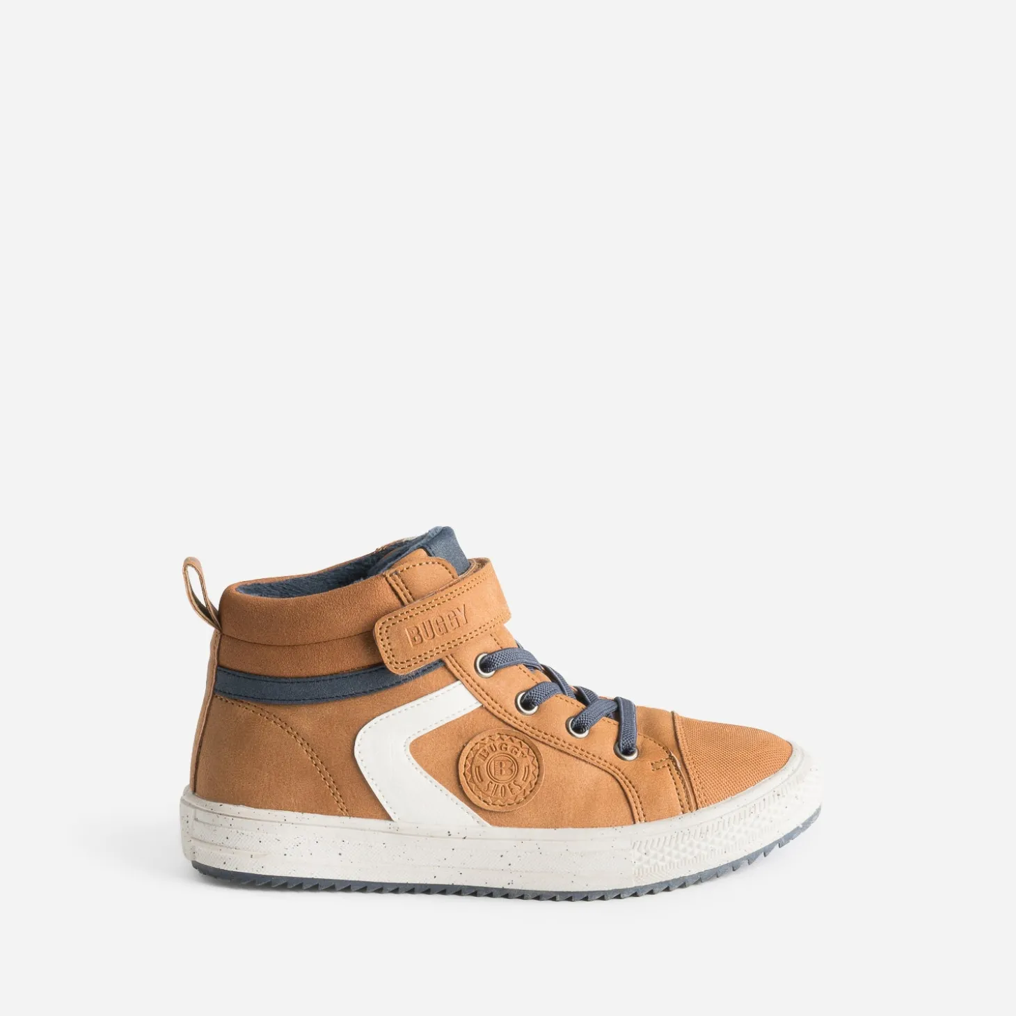 Le rêve d’un enfant, c’est une basket stylée, confortable, qui s’enfile facilement. En matière synthétique, elle se décline en coloris camel, rythmée de découpes écrues et bleu marine. Elle se ferme par un lacet élastiqué et par un scratch. Zoom sur la semelle tachetée et crantée, pour une meilleure adhérence. Sweat, jeans, c’est l’allié de toutes ses tenues du quotidien.