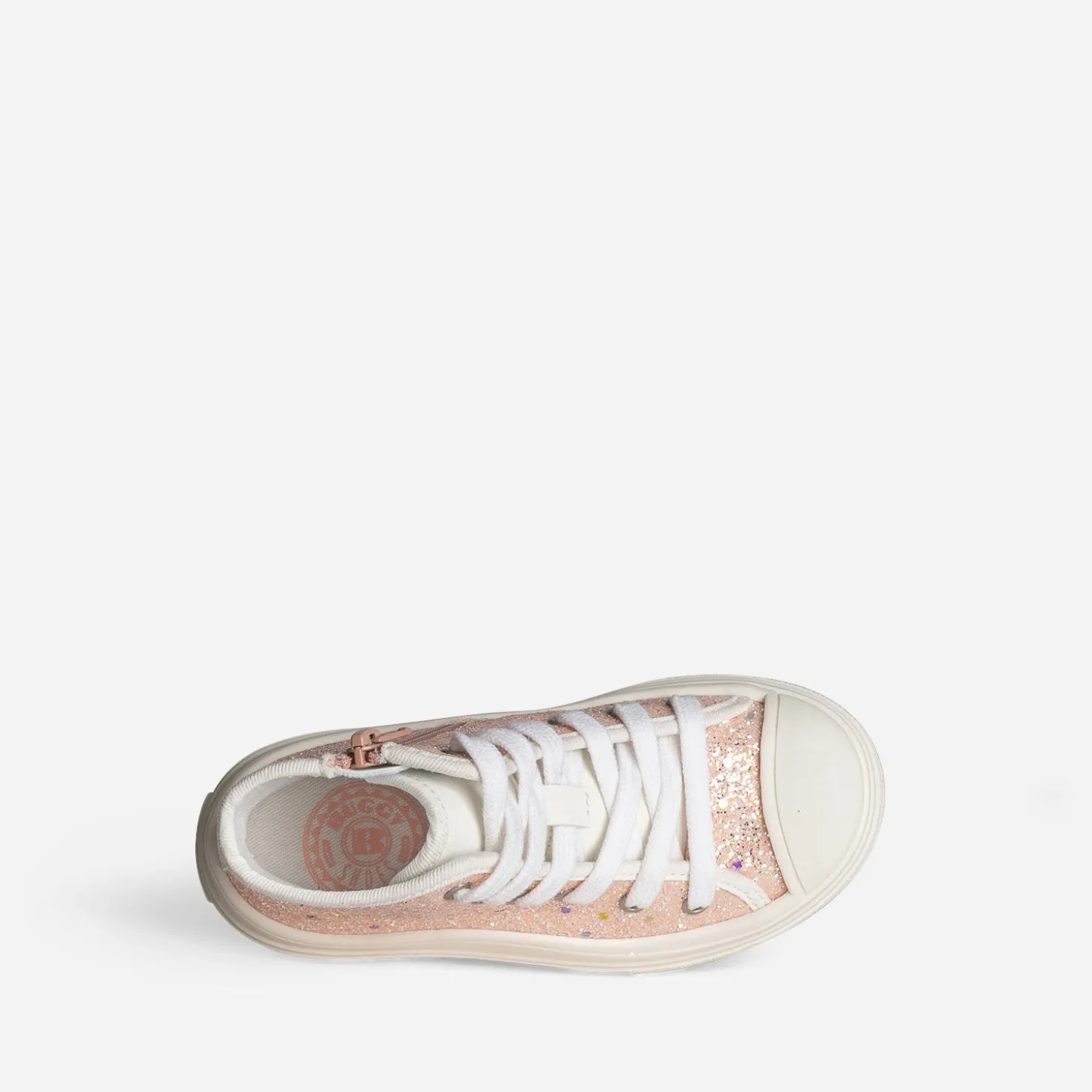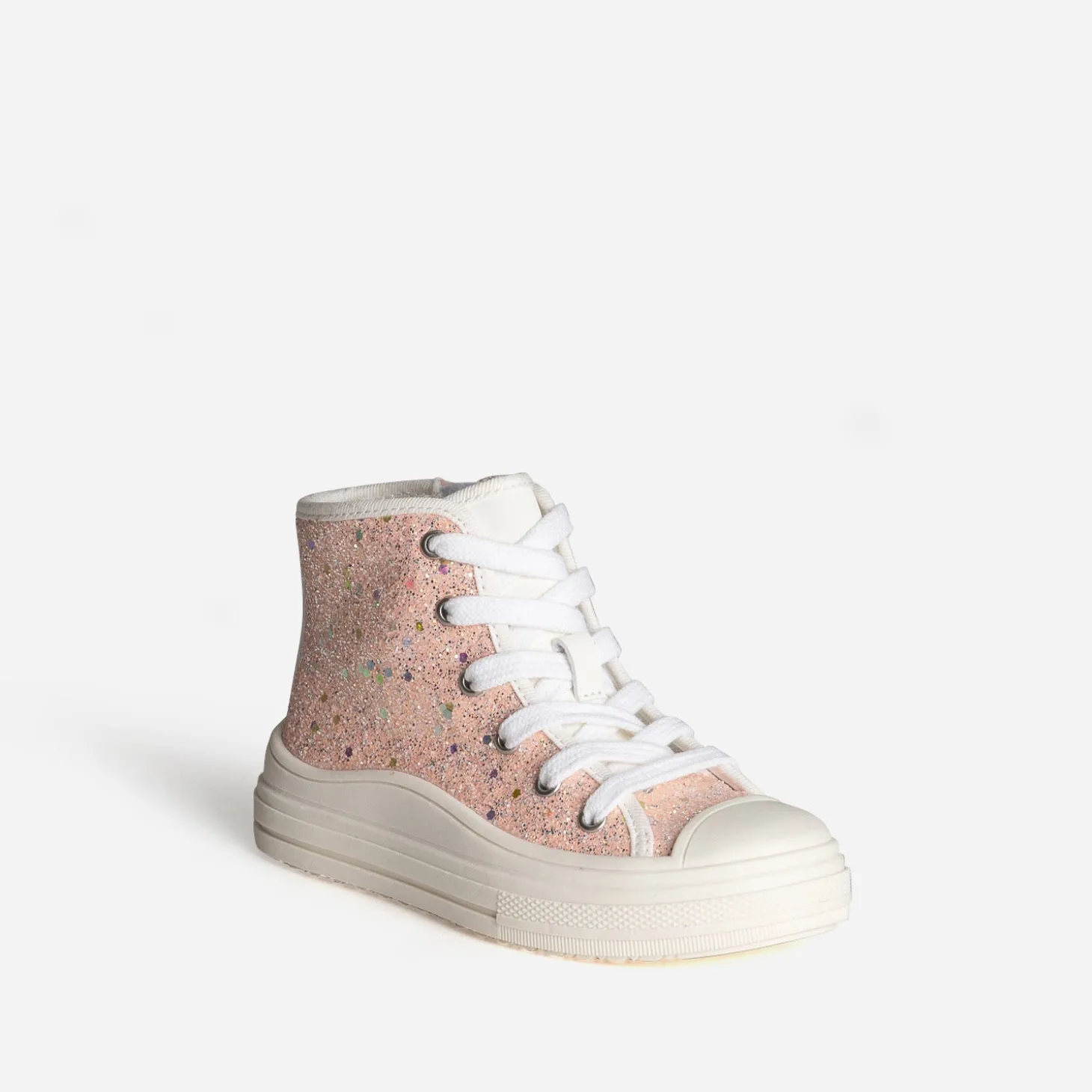 Rassuré.e que votre petite fille soit bien chaussée ? Proposez-lui cette basket. Parce qu’elle est montée sur une semelle épaisse, renforcée par un bout cuvette. Parce qu’elle est confectionnée en toile recouverte de paillettes roses avec pois multicolores. La fermeture par lacet est doublée d’un zip intérieur, pour faciliter l’entrée et la sortie du pied. Un modèle très mode, idéal pour le quotidien, avec un total look en jean bleu ou gris.