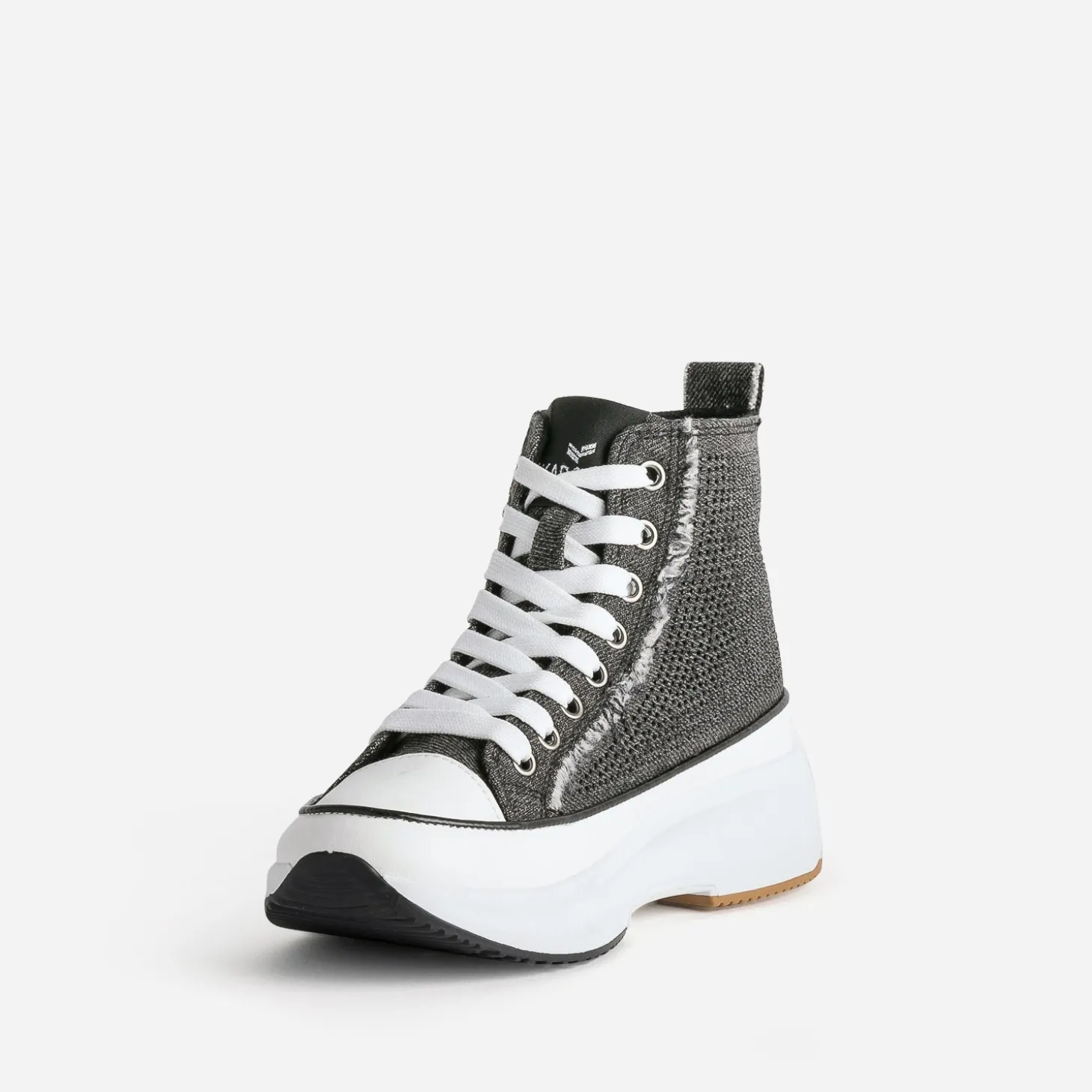 Entrez dans la saison hivernale avec cette basket montante pour femme. En textile façon denim gris anthracite, elle affirme son style mode par des strass noirs sur les côtés et des bords frangés sur les pattes de laçage et le galon. Montée sur une semelle à plateforme, elle permet de prendre de la hauteur sans effort. Un modèle à porter avec une tenue à l’esprit décontracté : crop top, pantalon large et casquette.