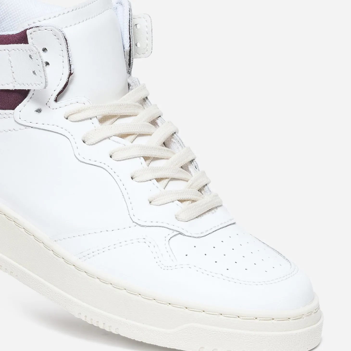 Fabriquée en Italie, en cuir éco-conçu, cette tennis pour femme a tous les atouts pour devenir un must-have. Un design simple et passe-partout. Un cuir blanc, intemporel, et une touche de textile bordeaux en signature. Le tout, sur une semelle très légèrement compensée, blanc cassé. Sa tige haute est aussi à l’aise en combi qu’en jupe, en robe qu’en jean.