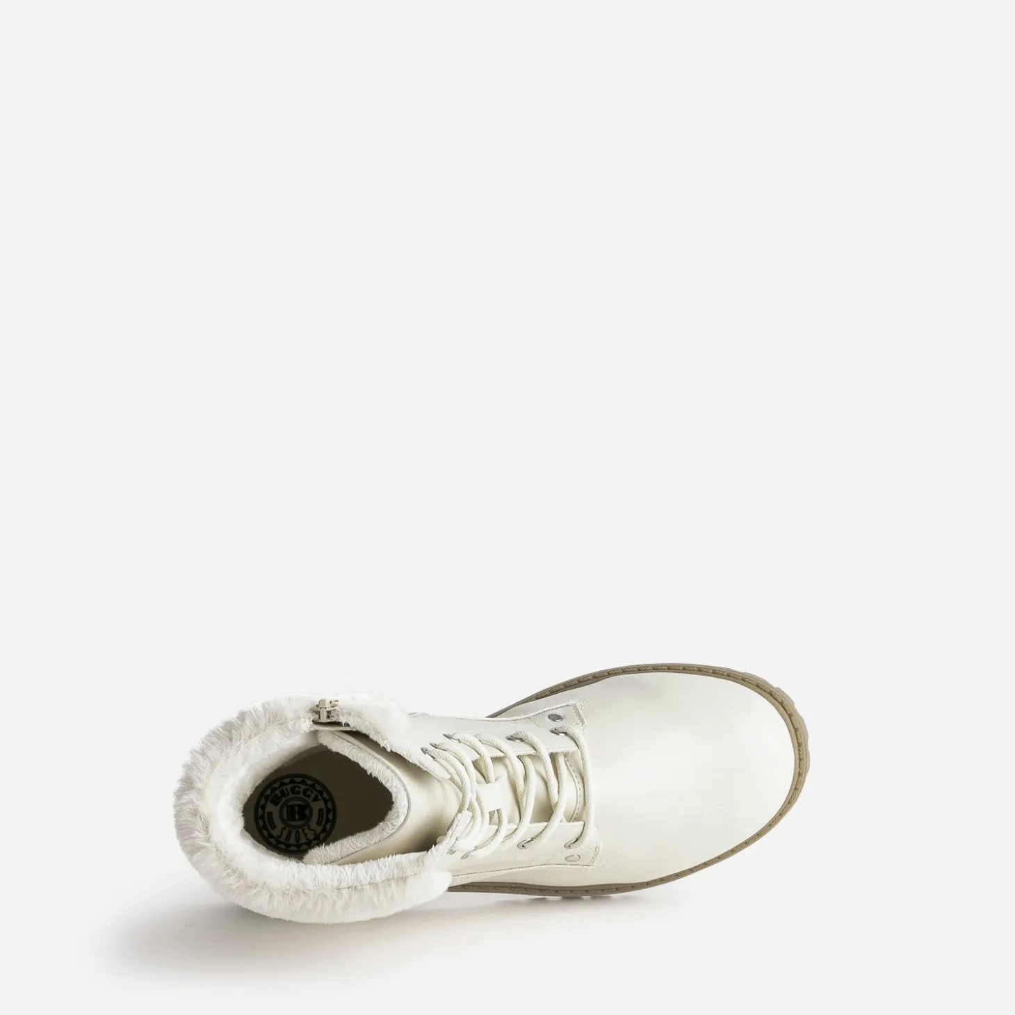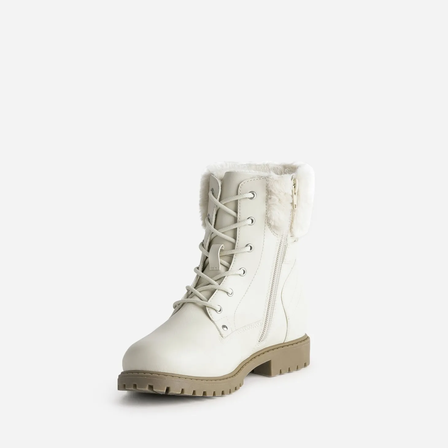 Qu’importe les prévisions météo pour cet hiver, le boots pour junior fille concilie confort, chaleur et style, sans compromis. En matière synthétique lisse, il se décline en coloris beige, avec doublure ton sur ton entièrement fourrée. Appréciez sa fermeture par lacet, doublée d’un zip intérieur, pour faciliter l’entrée et la sortie du pied, et ainsi gagner quelques précieuses minutes. Monté sur une semelle crantée, il promet une adhérence parfaite au sol. Un modèle à imaginer avec une robe pull à col roulé en tricot côtelé et des collants, dans les tons naturels.