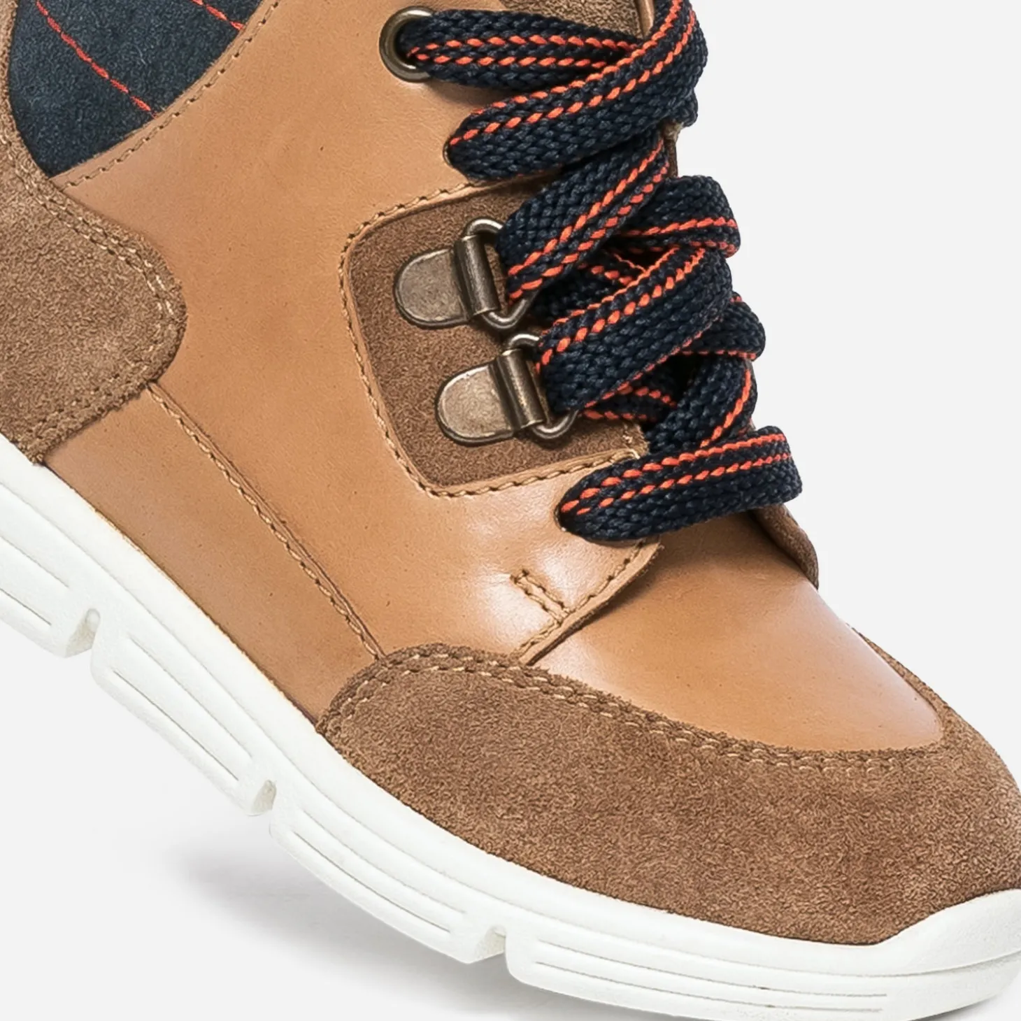 Le boots garçon est repensé pour chausser les enfants impatients, qui n’aiment pas perdre de temps. Elle affirme son originalité par des découpes et des contrastes de matières et de couleurs. Camel, il allie cuir lisse et cuir velours, à des détails bleu marine avec surpiqûres orange, en écho aux lacets, inspirés par l’univers de la montagne. Soucieux de l’autonomie des petits, il se ferme par un double scratch. Un modèle idéal pour la rentrée, aussi à l’aise avec qu’un jean qu’avec un sweat.