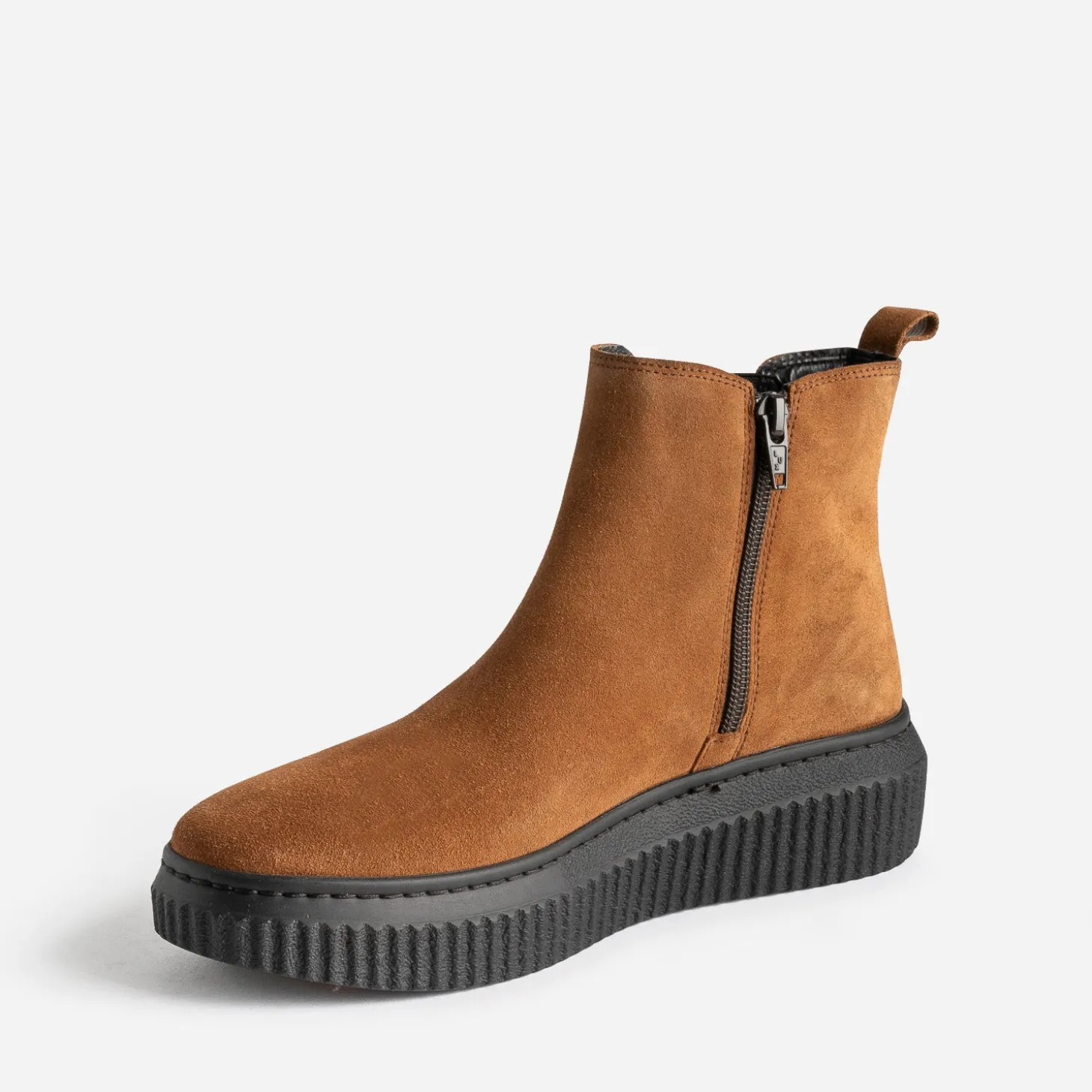 1. La plateforme. 2. L’effet cranté. Voilà 2 bonnes raisons de craquer pour ce boots femme cette saison. En cuir velours camel, il s’enfile et s’ôte facilement, grâce à zip intérieur. Il promet un confort optimal, grâce à l’élastique latéral et la semelle légèrement compensée de 2 cm à l’avant et 4 cm à l’arrière. Un modèle à privilégier tant avec les looks urbains que ceux plus streetwear, plus décontractés.