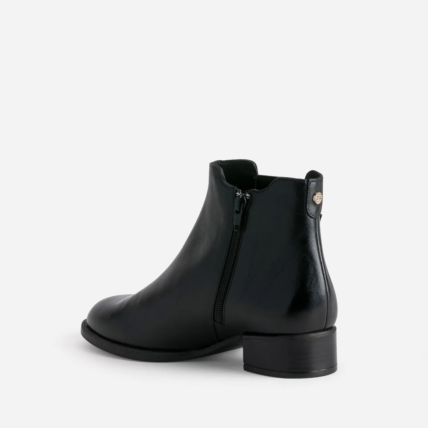Modèle essentiel du shoesing, le boots plat séduit par son élégance innée. En cuir lisse noir, il multiplie les détails pour gagner en valeur ajoutée : élastique latéral, patte en cuir embossé effet python, zip intérieur, talon décroché, semelle première amovible. Ses propriétés d’amorti, de respirabilité et de durabilité ne sont plus à prouver. Un modèle intemporel, pensé pour durer dans le temps.