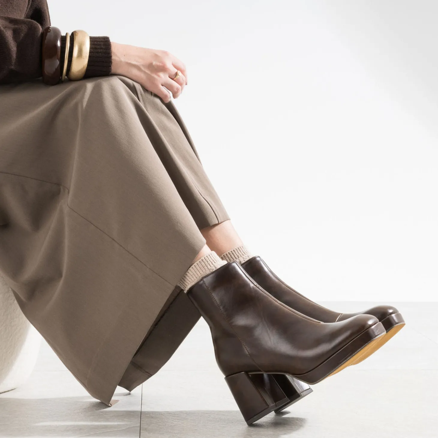 Le style rétro ? Pourquoi pas. L’allure disco ? Sautez le pas cet hiver, avec ce boots femme. En matière synthétique marron foncé, avec finition mate, il assume son talon large légèrement flare et son bout carré. Il ose même une plateforme d’1,5 cm à l’avant, pour soulager la cambrure du pied. La bonne nouvelle, c’est que la minijupe fait un come-back remarqué cette saison. A vous de jouer !