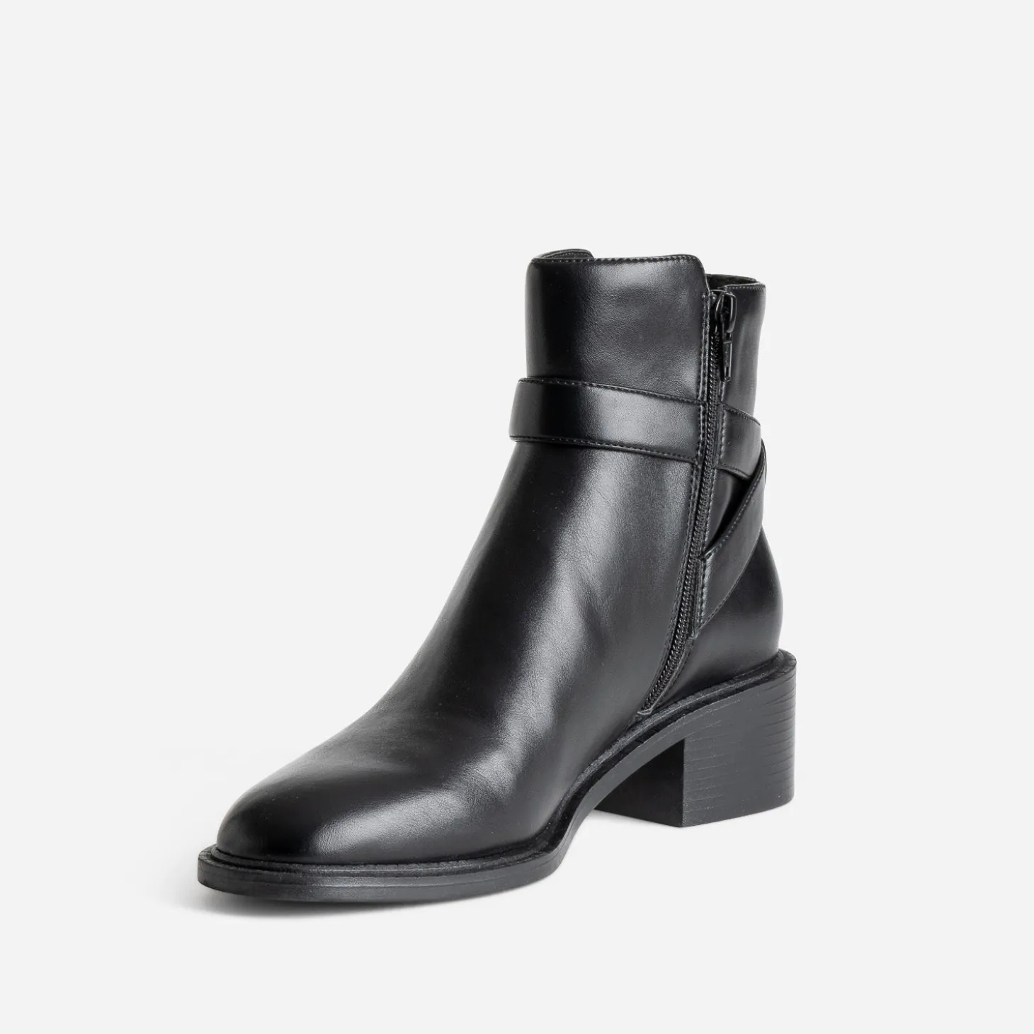 Découvrez la ligne parfaite de ce boots femme. Matière synthétique lisse, coloris noir, brides décoratives croisées à l’arrière de la tige, trépointe fantaisie, talon large de 4,5 cm. Résultat ? Un style classique et élégant, en toutes circonstances. Un modèle à intégrer dans vos looks du quotidien, avec un pull col V gris et un jean noir comme avec un costume.