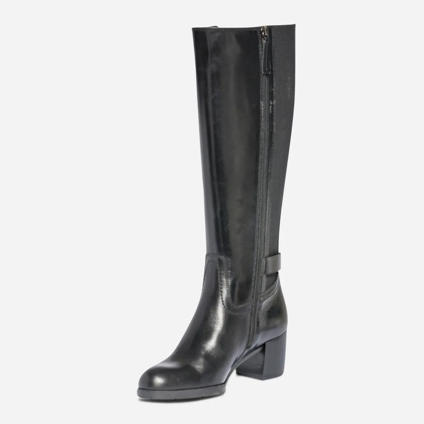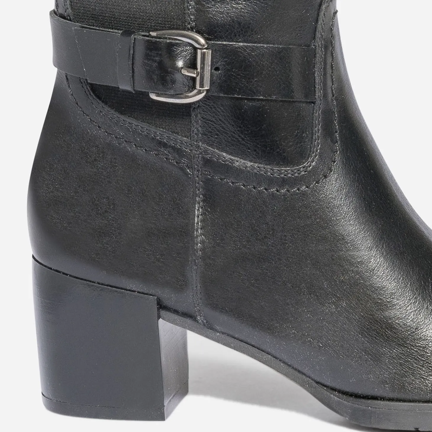 Trouver botte à son pied n’est pas toujours aisé. Une question de mollet paraît-il. Ce modèle bi matière pour femme associe cuir et textile pour apporter un maximum de confort au mollet large. Noire, elle est montée sur un talon large de 6 cm et présente, autour de la cheville, une jolie bride à boucle. A vous les robes et jupes de la saison !