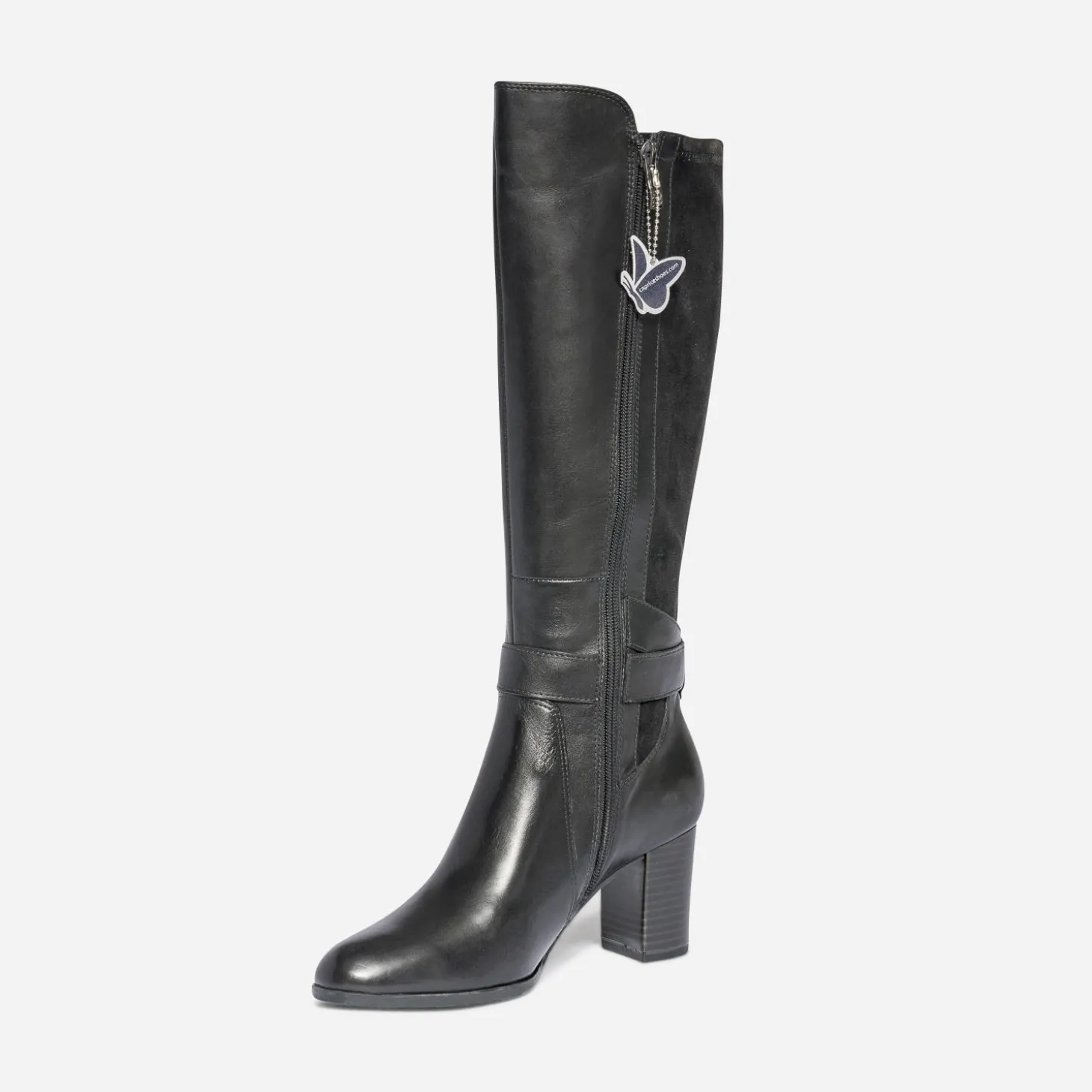 Spécialiste du bien-être, la marque CAPRICE propose des chaussures au confort incomparable. Cet hiver encore, la botte à la côte. En première ligne des podiums, elle séduit par sa tige haute animée d’un jeu bi matière, associant cuir lisse et textile dans une découpe bien pensée. La bride vient mettre en valeur la cheville, avec une double boucle en métal gun. Elle est montée sur un talon d’une hauteur idéale, qui ne ralentira pas votre quotidien.