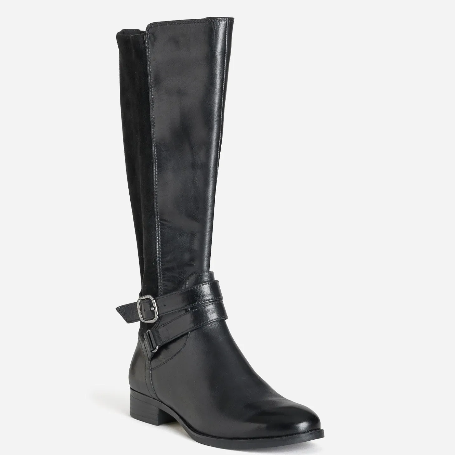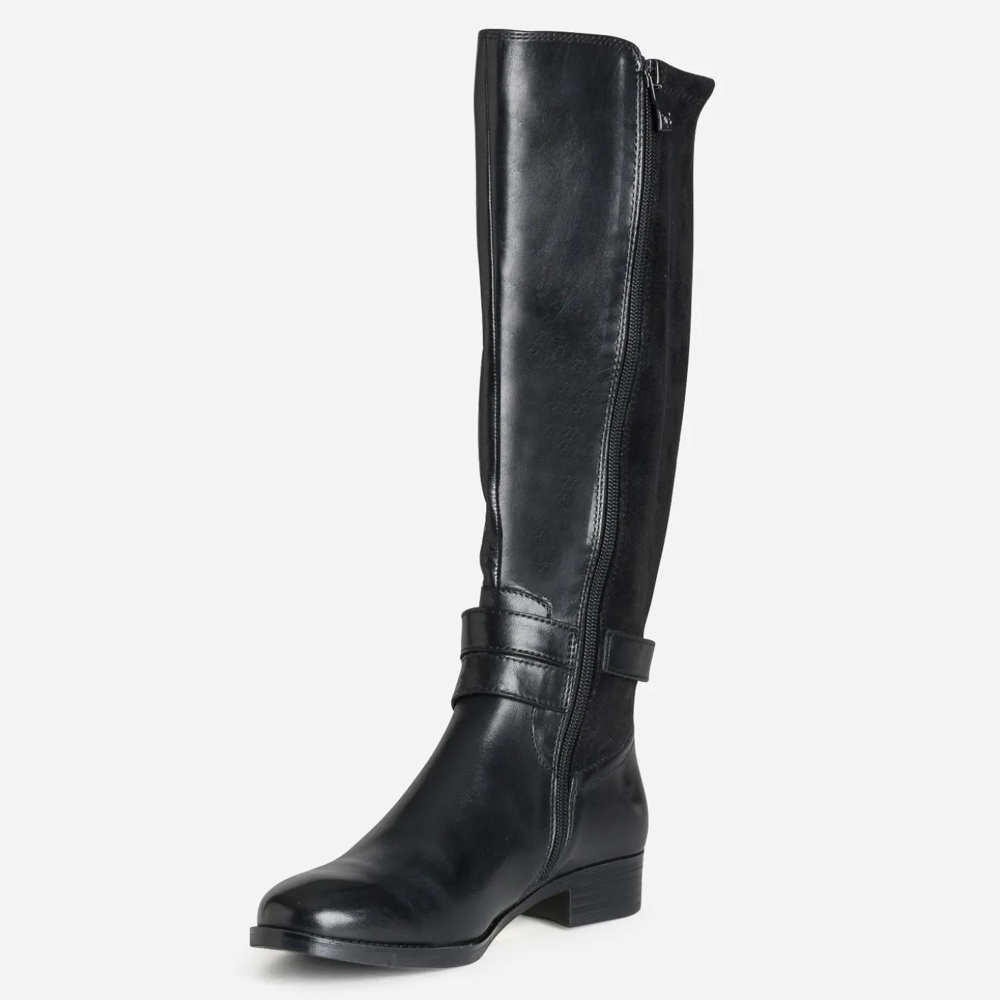 La botte bi-matière pour femme revient sur le devant de la scène mode. La tige haute associe cuir lisse et textile suédée extensible dans un même coloris noir, gagnant une aisance évidente. Inspiration jodhpur, elle présente une double bride à la cheville et se ferme par un zip intérieur. Montée sur une semelle dotée de la technologie ‘onAIR’, elle promet un meilleur amorti et une aération optimale. Un modèle féminin, à porter en journée et en soirée, avec vos robes et jupes du quotidien.