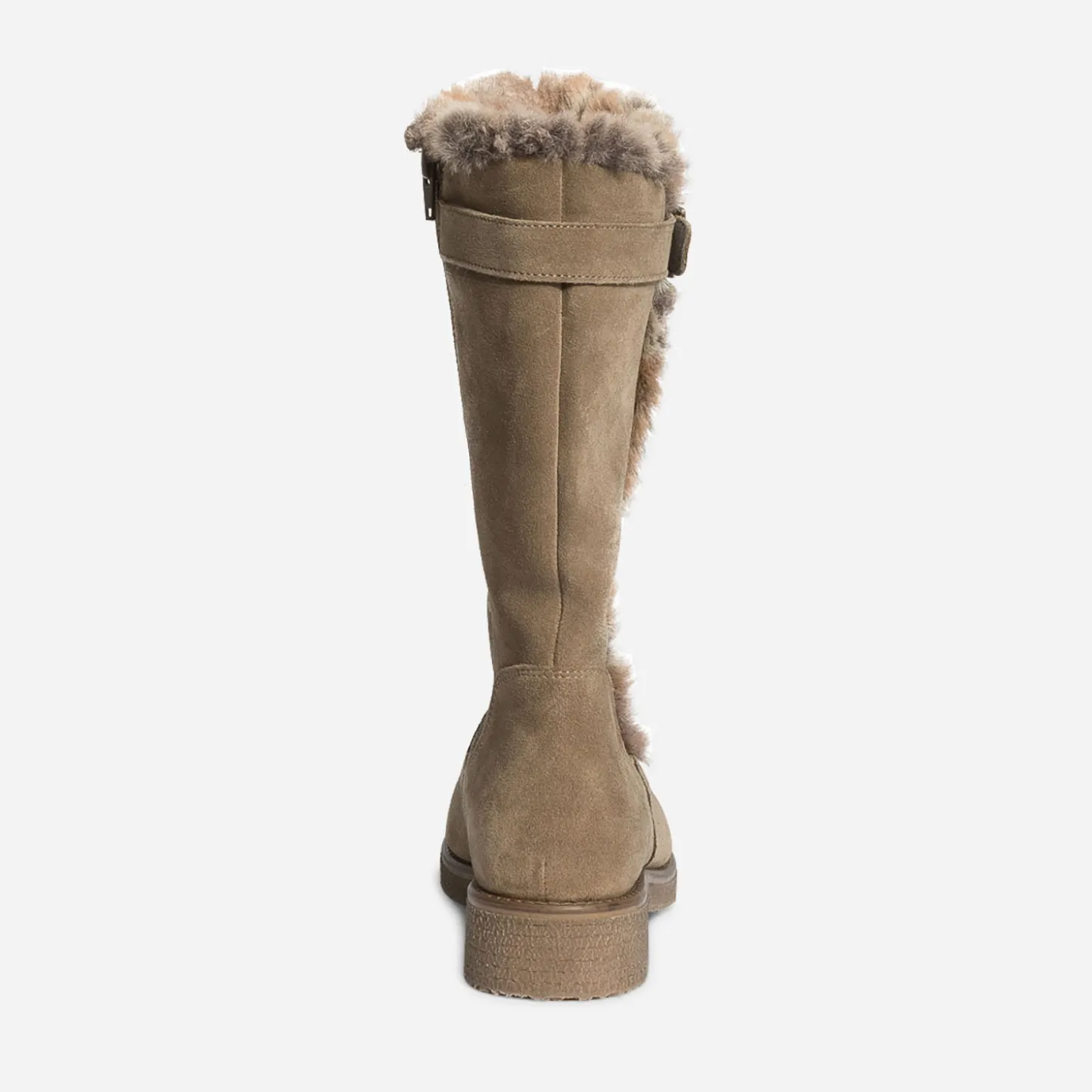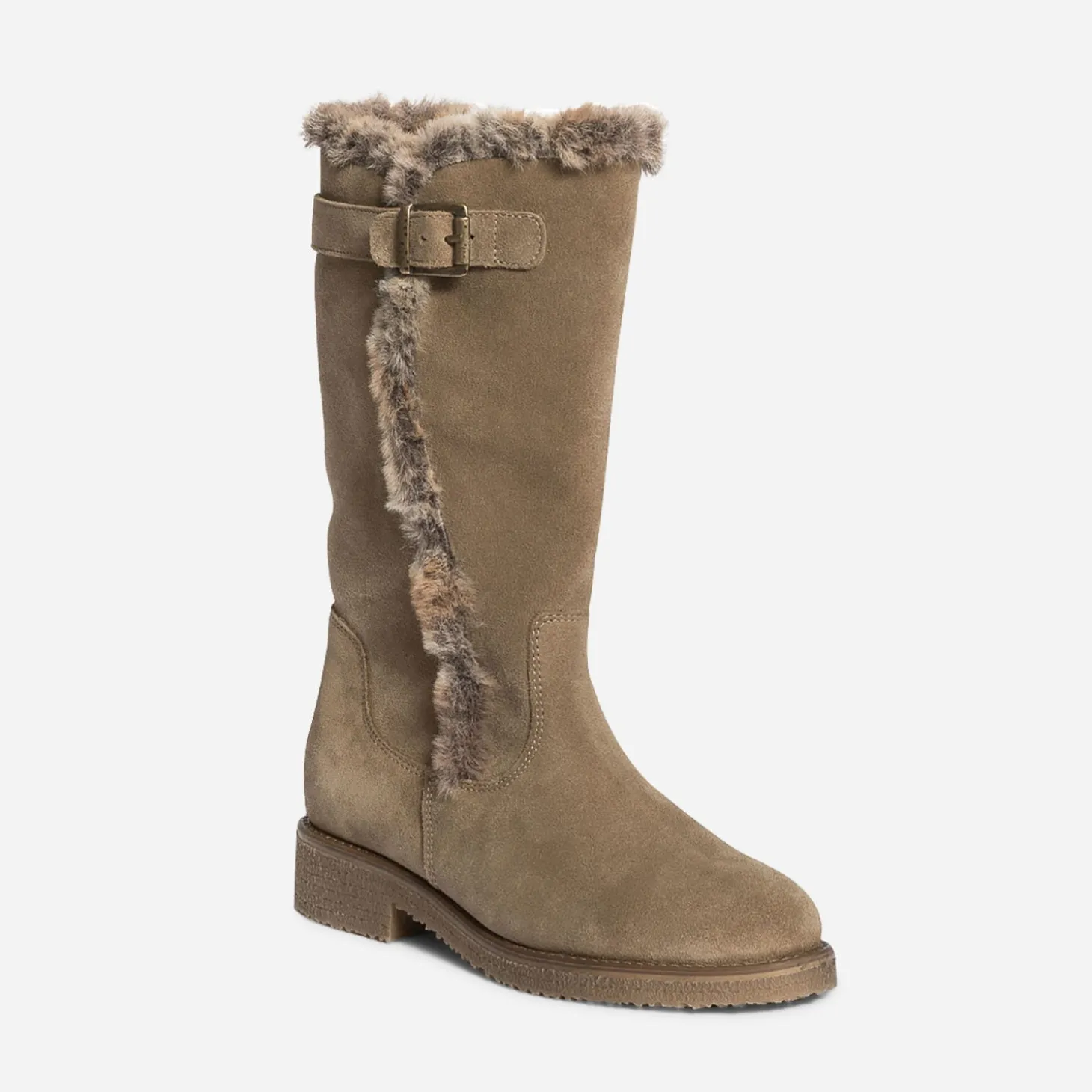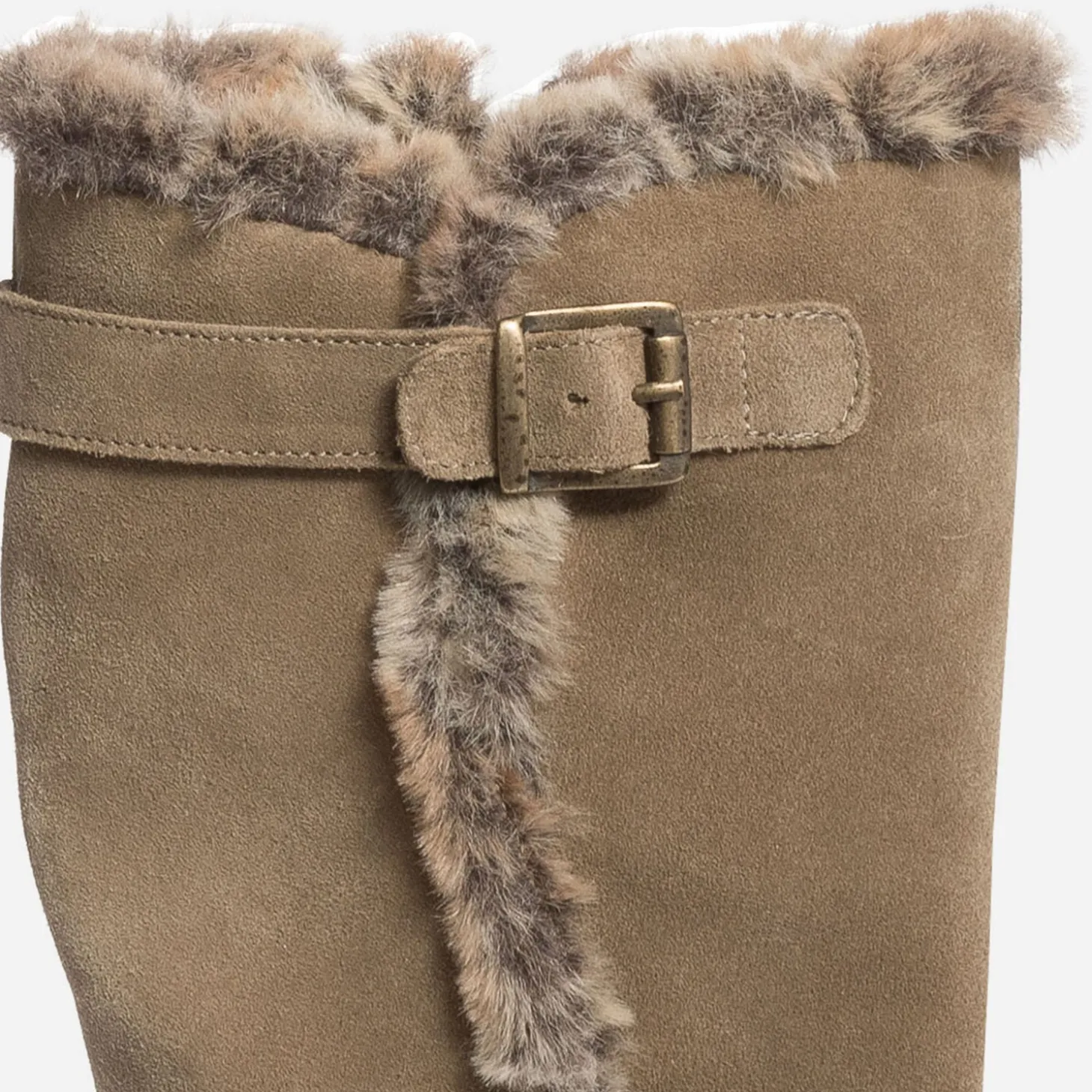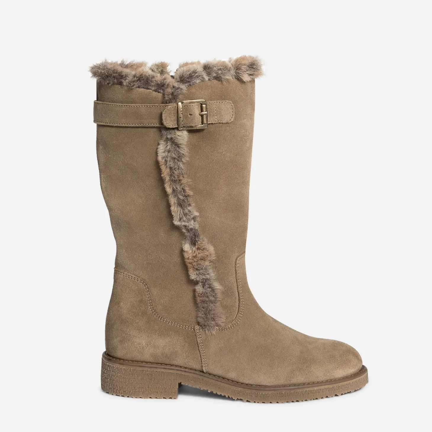Mode plein hiver activé ! Revenez aux essentiels avec cette botte, qui s’adapte aux plus basses températures. En cuir velours taupe, elle est entièrement doublée de fourrure synthétique pour réchauffer les pieds et les tenues ! Le haut de la tige est souligné d’une bride, inspirée par le style motard. Un modèle à imaginer avec des tons neutres et chaleureux, blanc crème, gris perle, jaune safran.