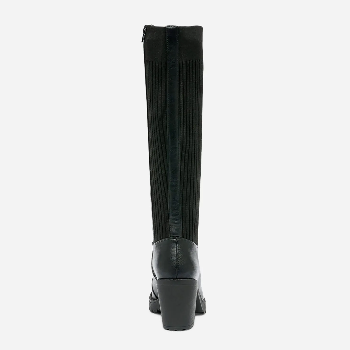 Et si vous bousculiez les modes ? Jouez avec la mode en chaussant cette botte pas tout à fait comme les autres. Elle doit son style rock voire grunge avec son mix de matières maîtrisé. Dessus synthétique et tige en textile côtelé, le tout en ton sur ton noir, fermée à la fis par un lacet et un zip intérieur. Un modèle qui épouse la jambe et mérite d’être exposé, sur des leggings ou des collants, avec pourquoi pas, un total look maille, ultra tendance.