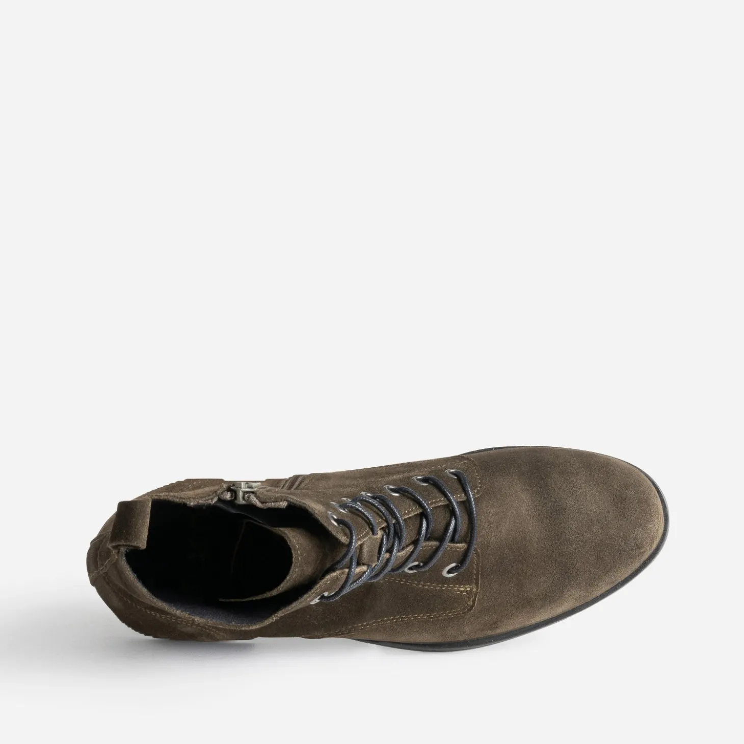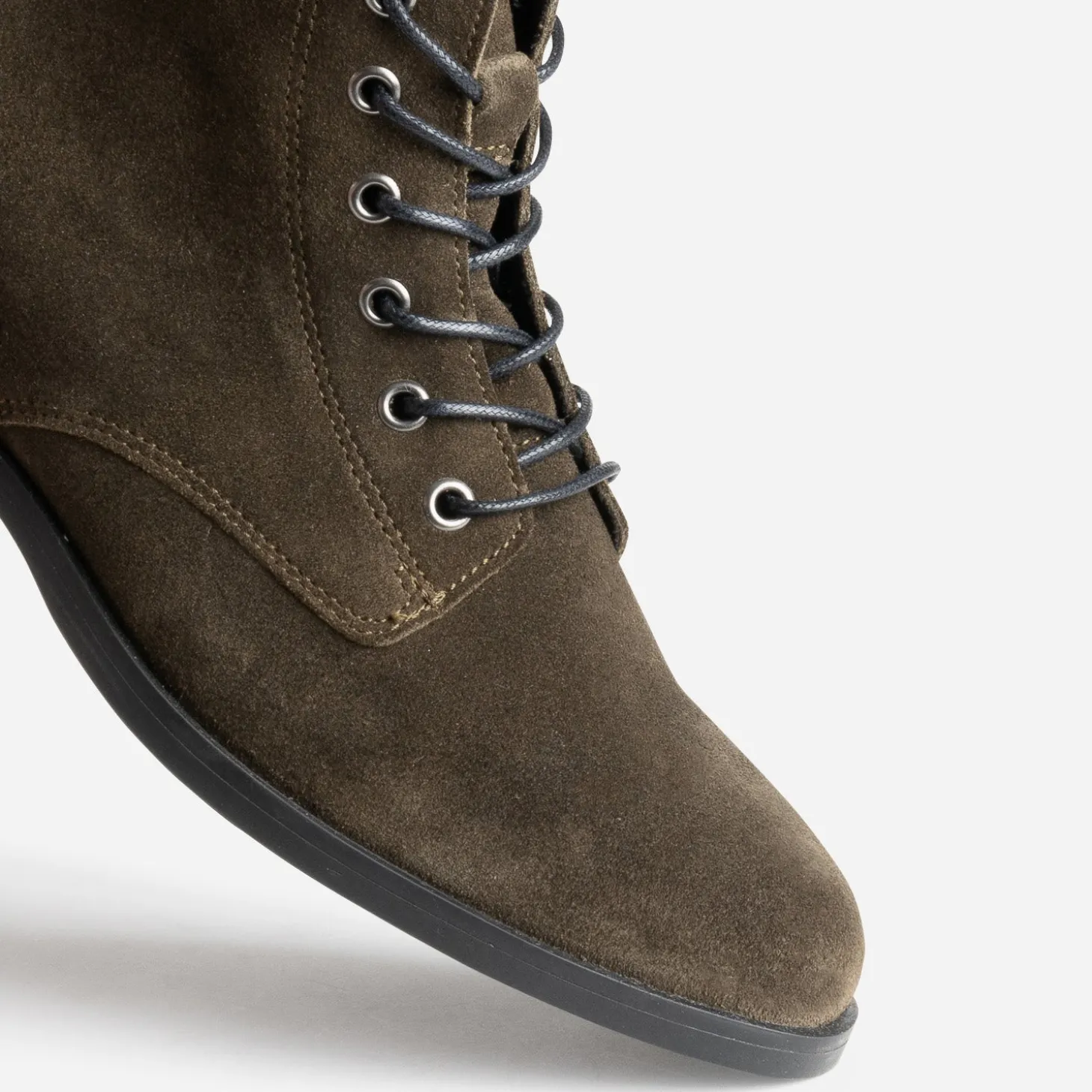Cette bottine femme répond à des nombreuses envies mode du moment. Plate, elle est confectionnée en cuir velours kaki et se ferme par un lacet ciré rond noir. Un modèle plutôt classique avec une jupe midi, rock avec un jean enduit.