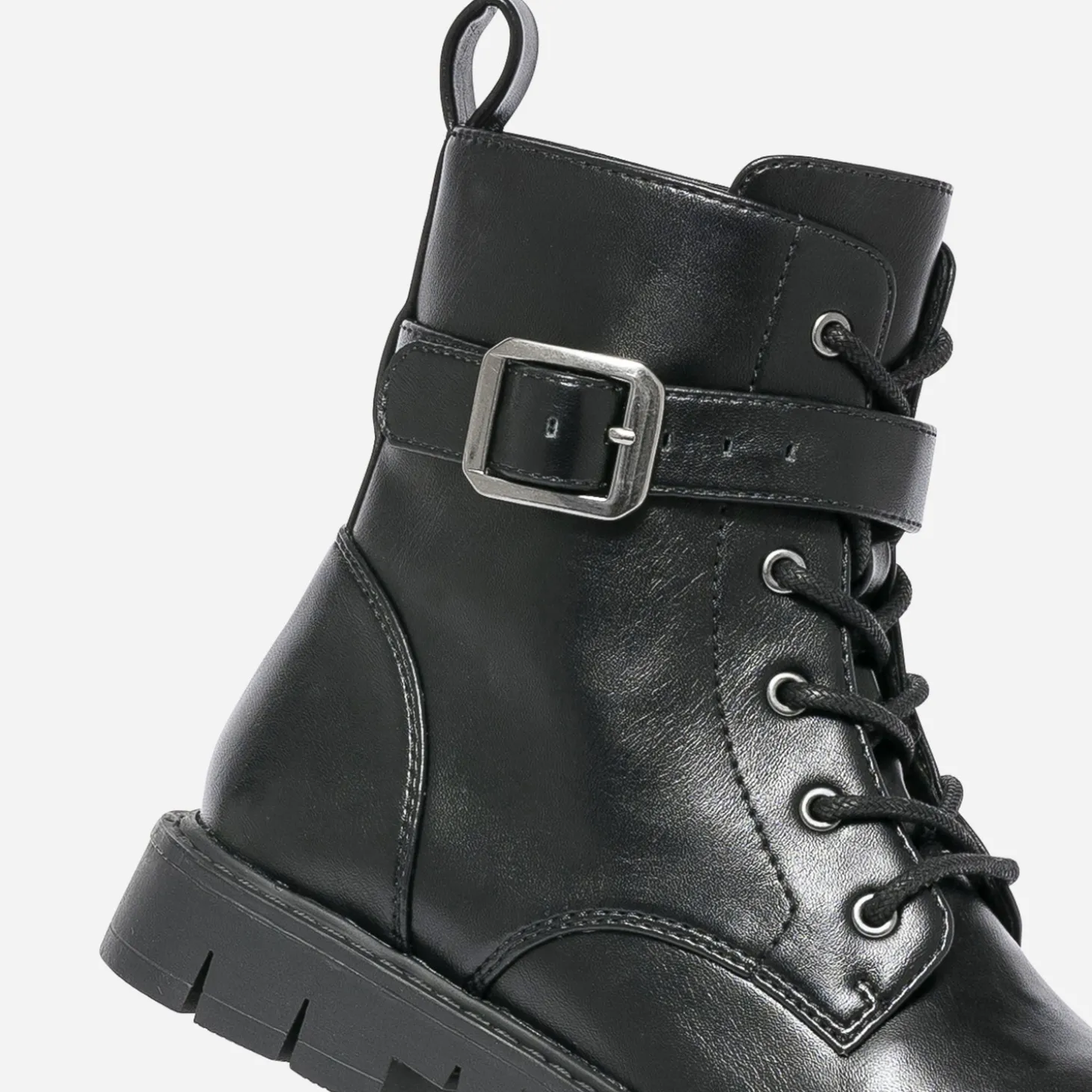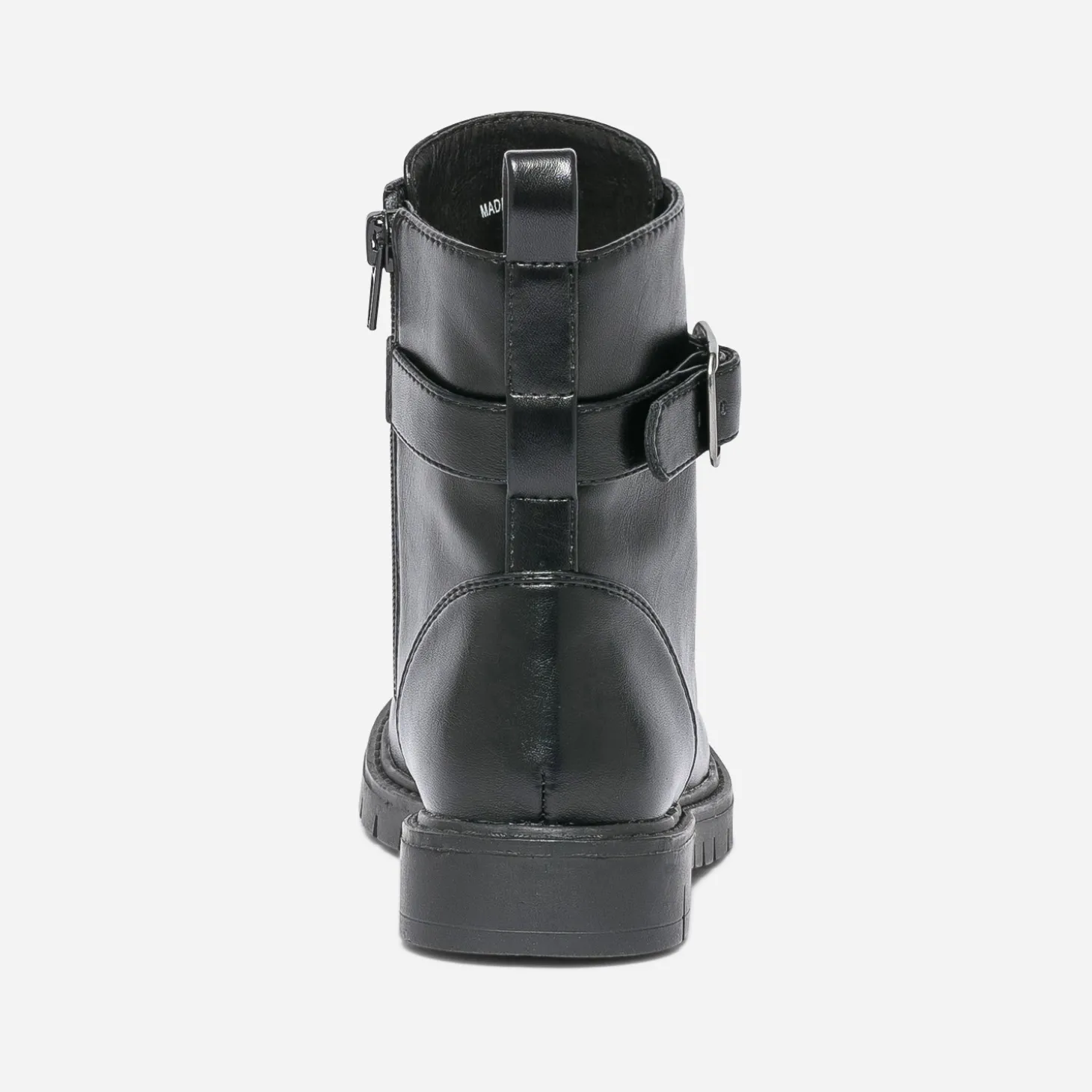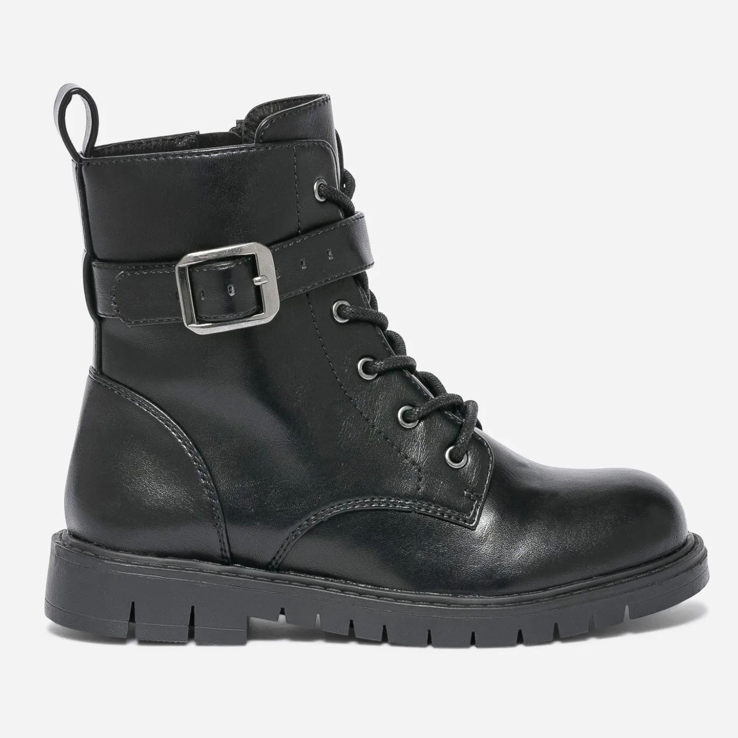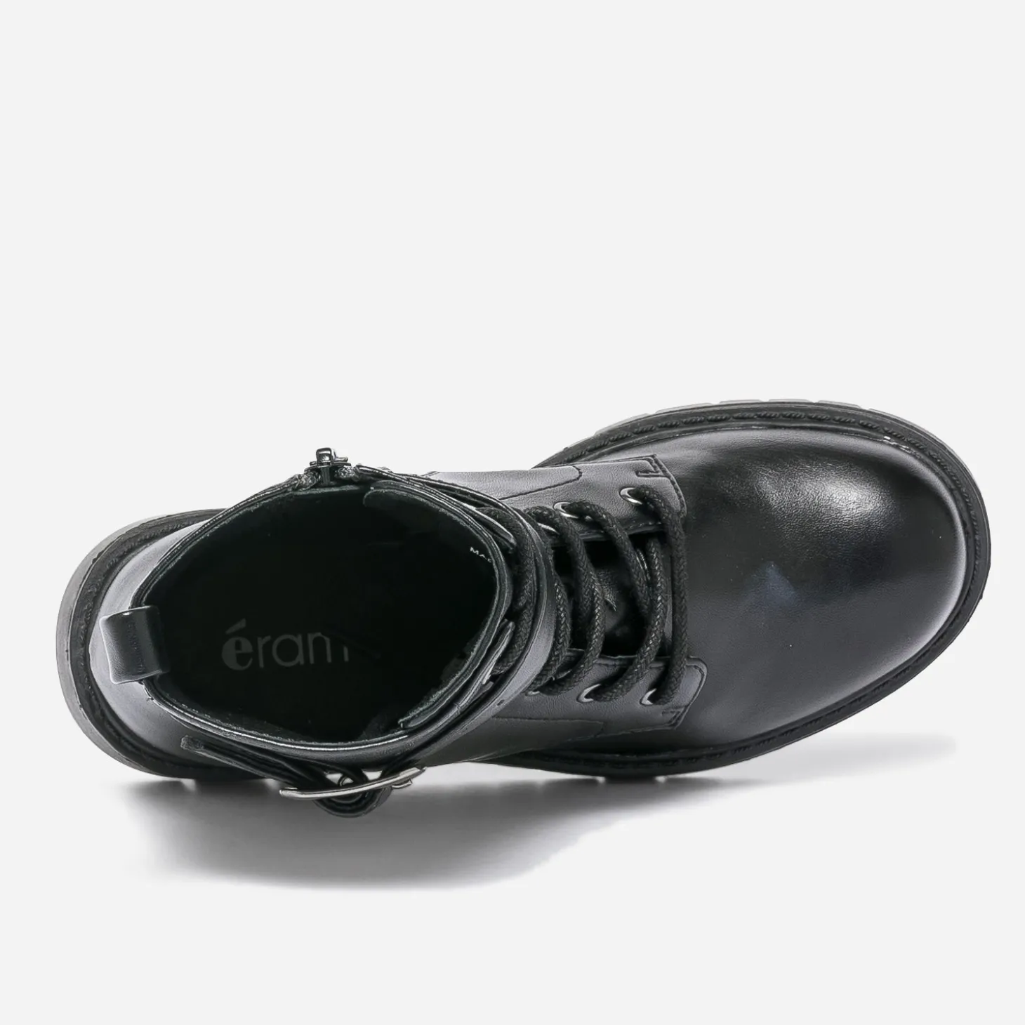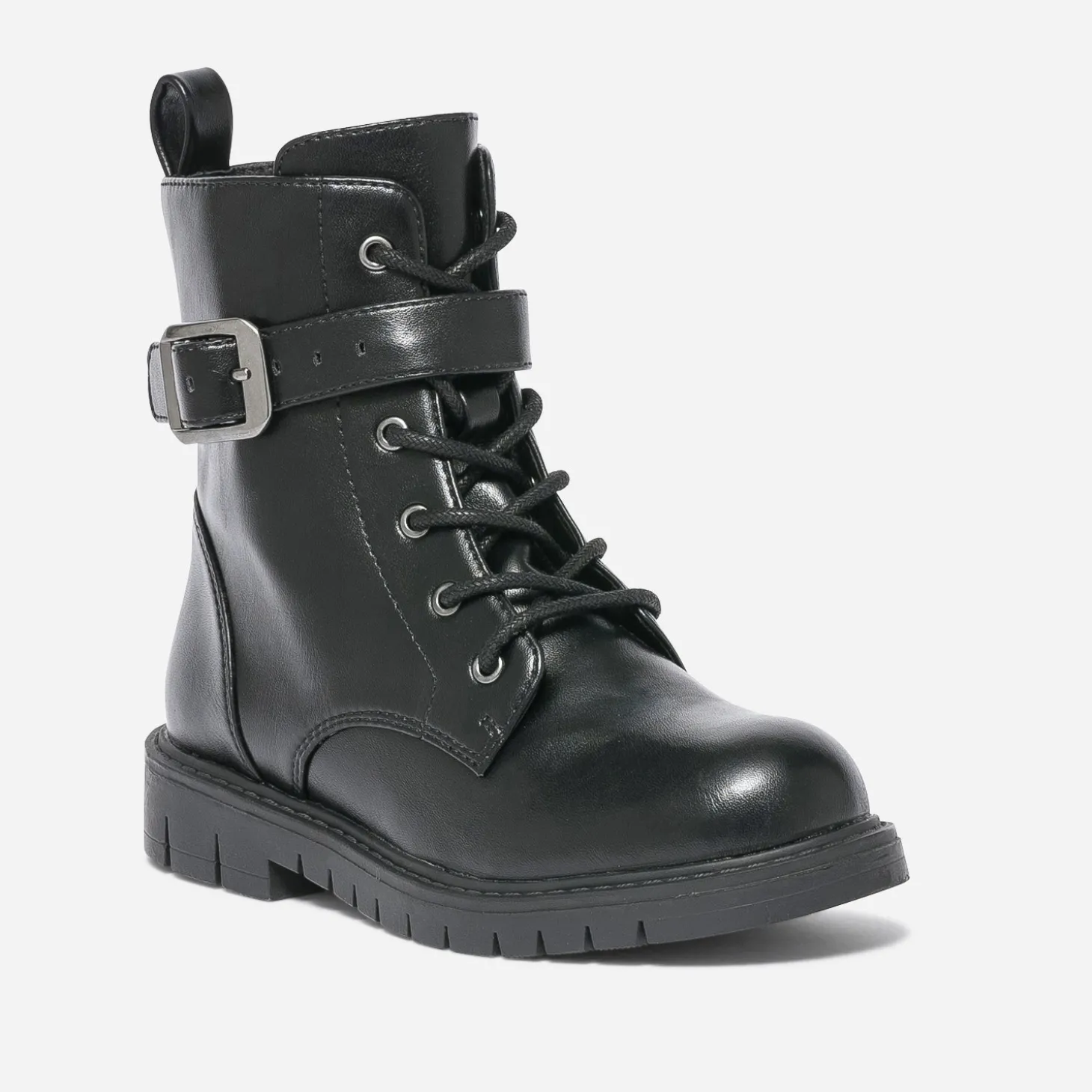 Loin de nous l’envie de faire marcher les enfants au pas. Pourtant cette bottine militaire est un modèle incontournable de la saison. Tige montante lacée et zippée, semelle crantée, elle présente même une bride à boucle sur la cheville. En matière synthétique noire, elle sera l’alliée des filles de la maison à la cour de récré.