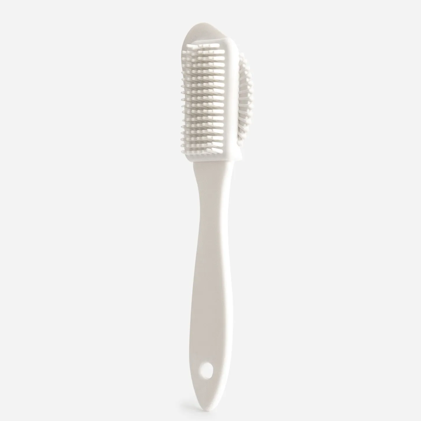Le nettoyage des daims et nubuck nécessite toutes les précautions, pour ne pas abîmer le cuir. Cette brosse blanche combine plusieurs formes sur un unique embout, pour gratter et éliminer toutes les saletés et poussières.