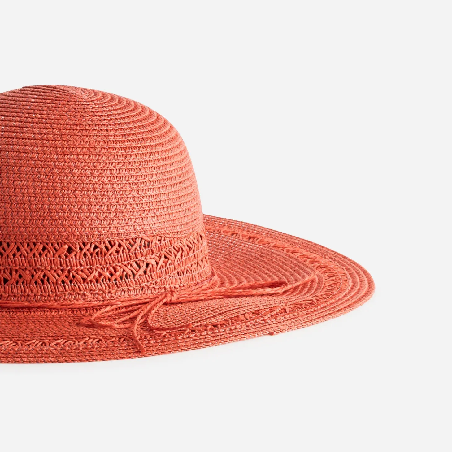 Laissez le soleil caresser votre visage, protégé par cette capeline en paille papier. Coloris rouge corail, détails ajourés et lien tressé, sa légèreté vous apportera une vraie touche d’élégance tout au long de l’été. Un accessoire à imaginer avec une robe longue fleurie et coloré.
