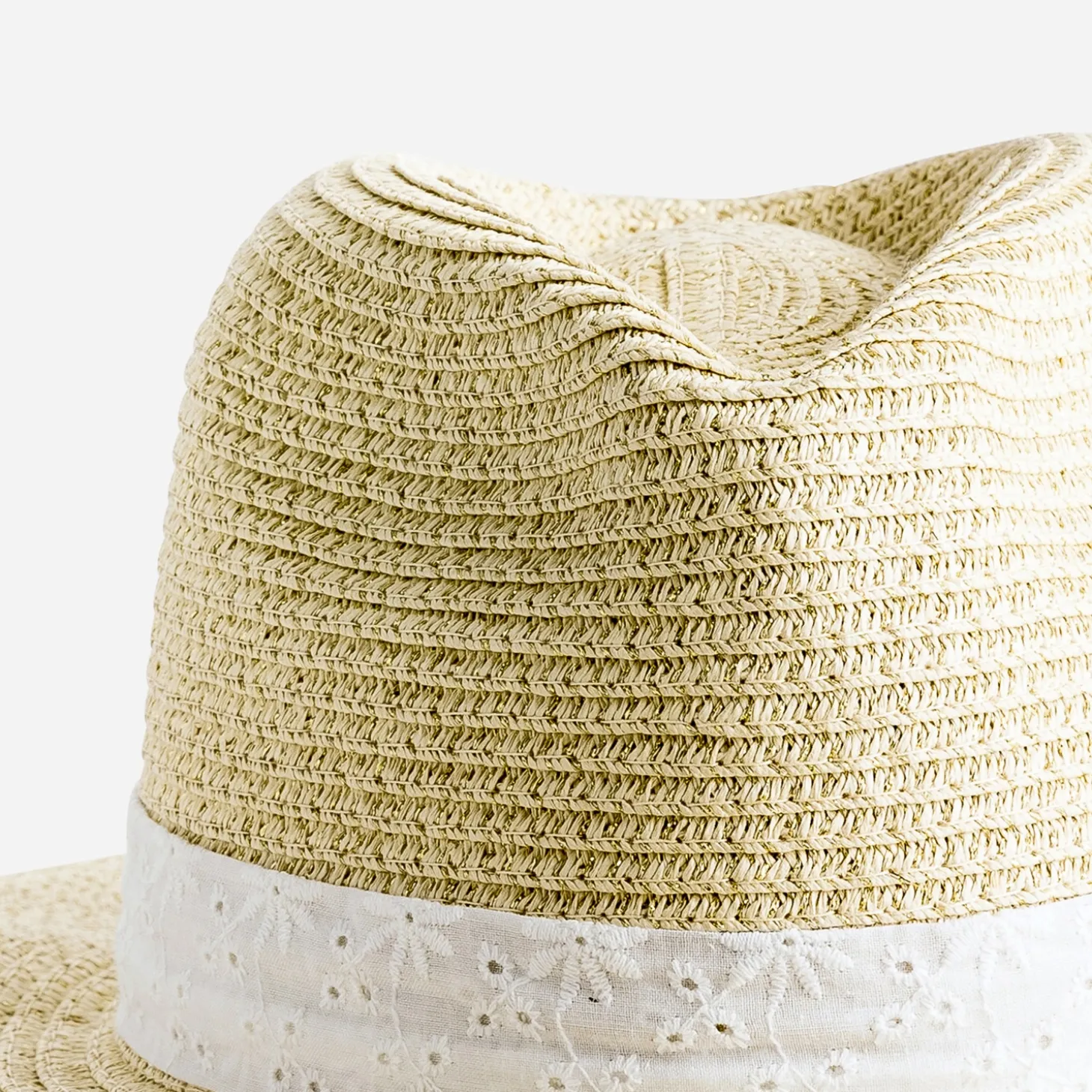 Chapeau beige doré avec galon broderie anglaise
