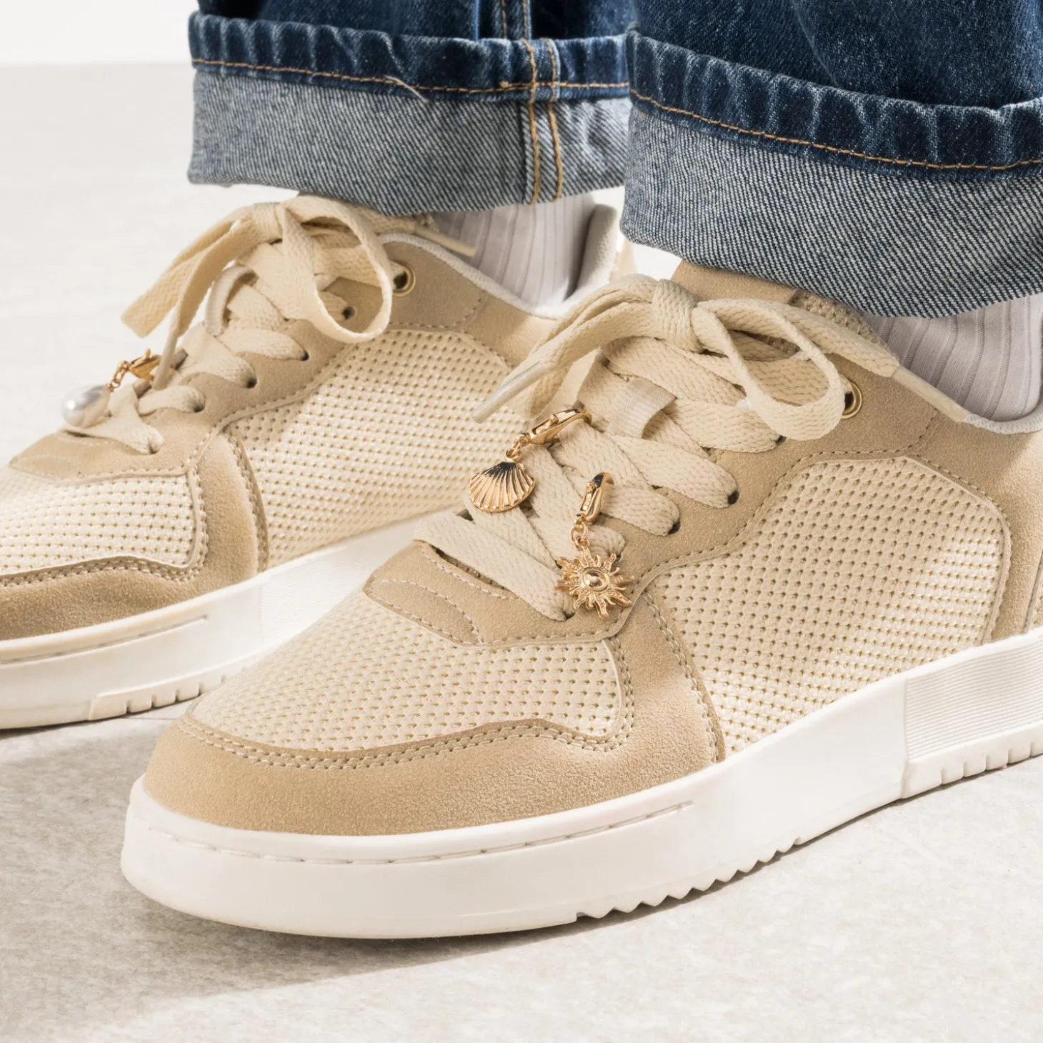 Vous qui portez des baskets quotidiennement, que diriez-vous de twister leur allure avec style, en quelques secondes ? C’est l’idée de ces charms en métal doré. Montés sur mousquetons, en forme d’étoiles de mer, de coquillages ou de soleil, ils s’accrochent aux lacets, sur la même chaussure ou celle d’à côté.