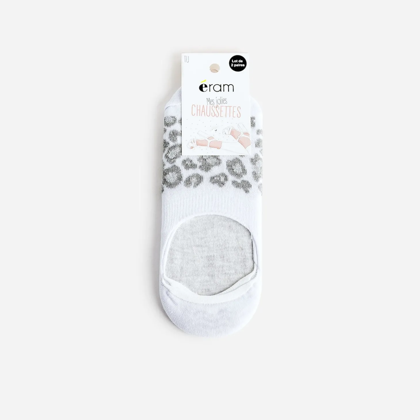 L’une blanche à motif léopard gris et argent, l’autre unie grise : ces deux paires de chaussettes pour femme ont deux spécificités : celle d’être tendance en toutes circonstances, celle d’être invisibles dans toutes vos chaussures.