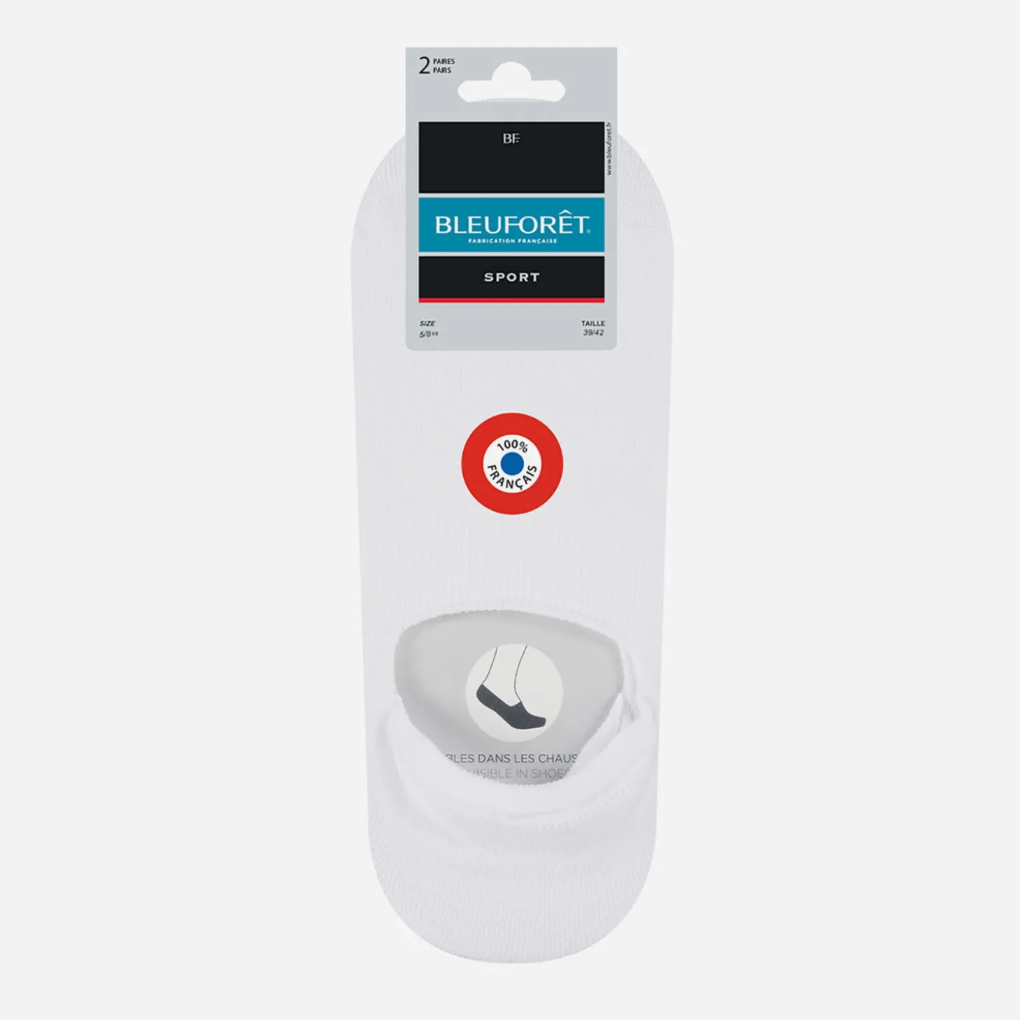 Chaussettes sport invisibles BLEU FORET blanches pointure 43-46