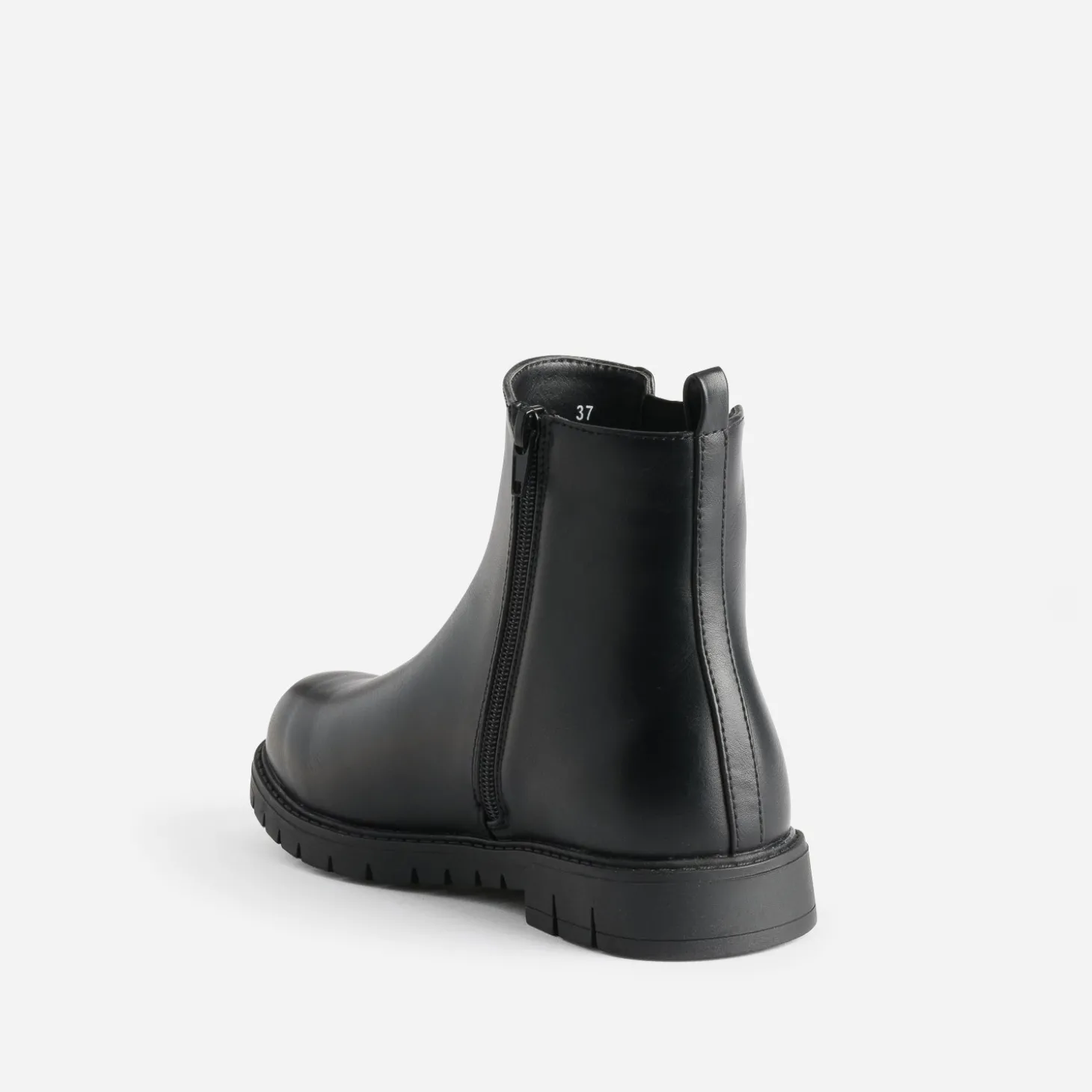 Ce chelsea boots pour junior fille est un modèle intemporel, saison après saison. En matière synthétique noire, il est modernisé par une semelle crantée, pile dans la tendance. Un modèle facile à porter au quotidien, avec ses robes imprimées comme avec ses jeans.