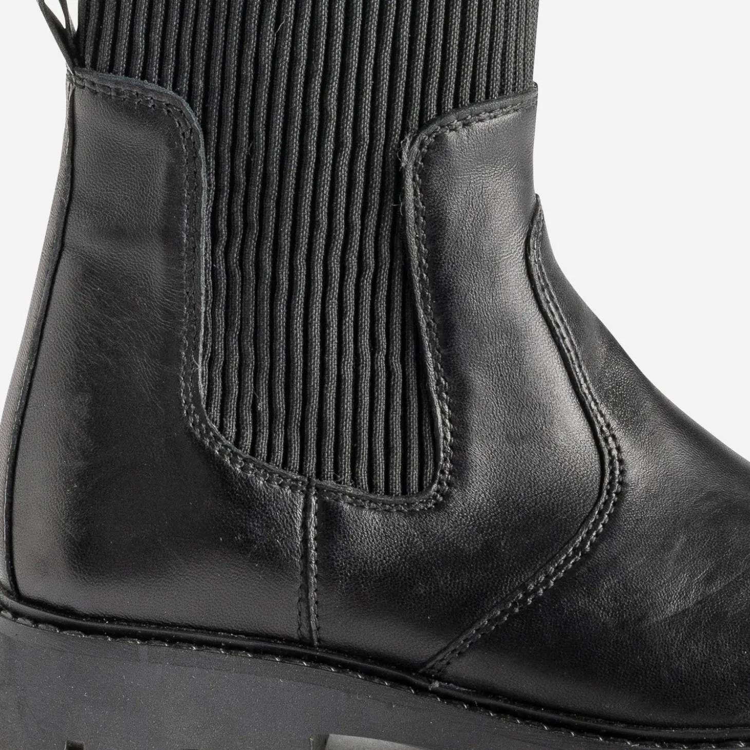 Rock attitude recommandée avec ce Chelsea boots pour fille. Noir, il se démarque par une tige en cuir lisse, prolongée par des élastiques en textile côtelé, et une semelle crantée. Robe plissée ou blouson esprit motard sur jean slim, misez sur un total look dark.