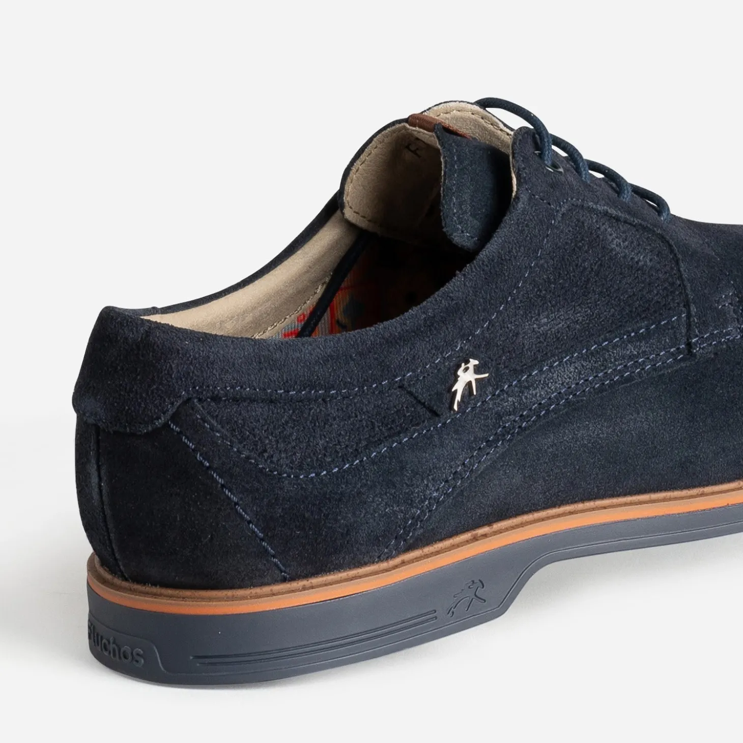 Cuir velours souple, coloris bleu marine, le derby pour homme reste un incontournable des souliers masculins. Les quartiers se démarquent par un embossage, et la trépointe, par une touche de camel, et la doublure, par un motif imprimé et coloré. Un modèle à préférer, au quotidien, avec une chemise bleu ciel et un pantalon chino beige.