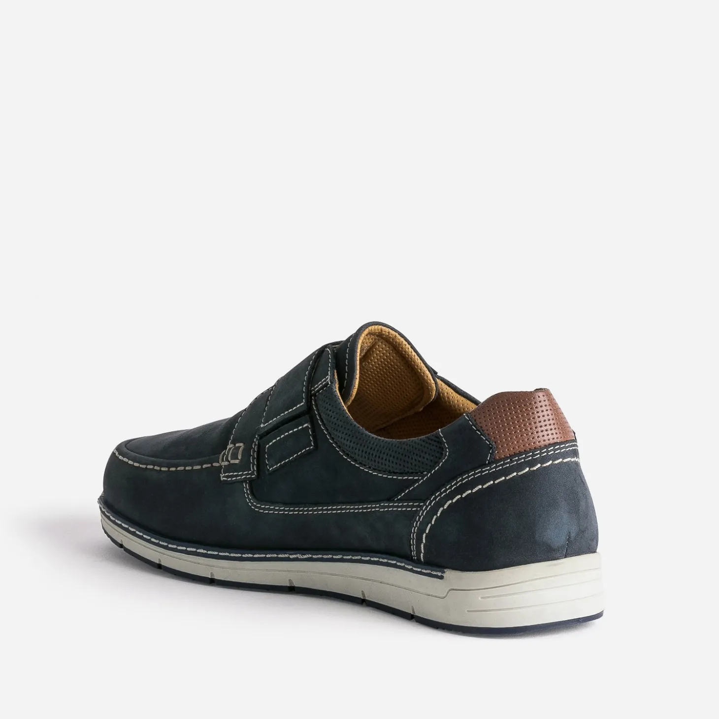 Redécouvrez le derby dans une version confort, avec semelle intérieure amovible et fermée par une large bride à scratch. En cuir nubuck, il se décline en coloris bleu marine, rythmé de surpiqûres contrastées, d’un contrefort marron et d’une doublure mix matières ocre. Préférez le confort au quotidien, avec toutes vos tenues.