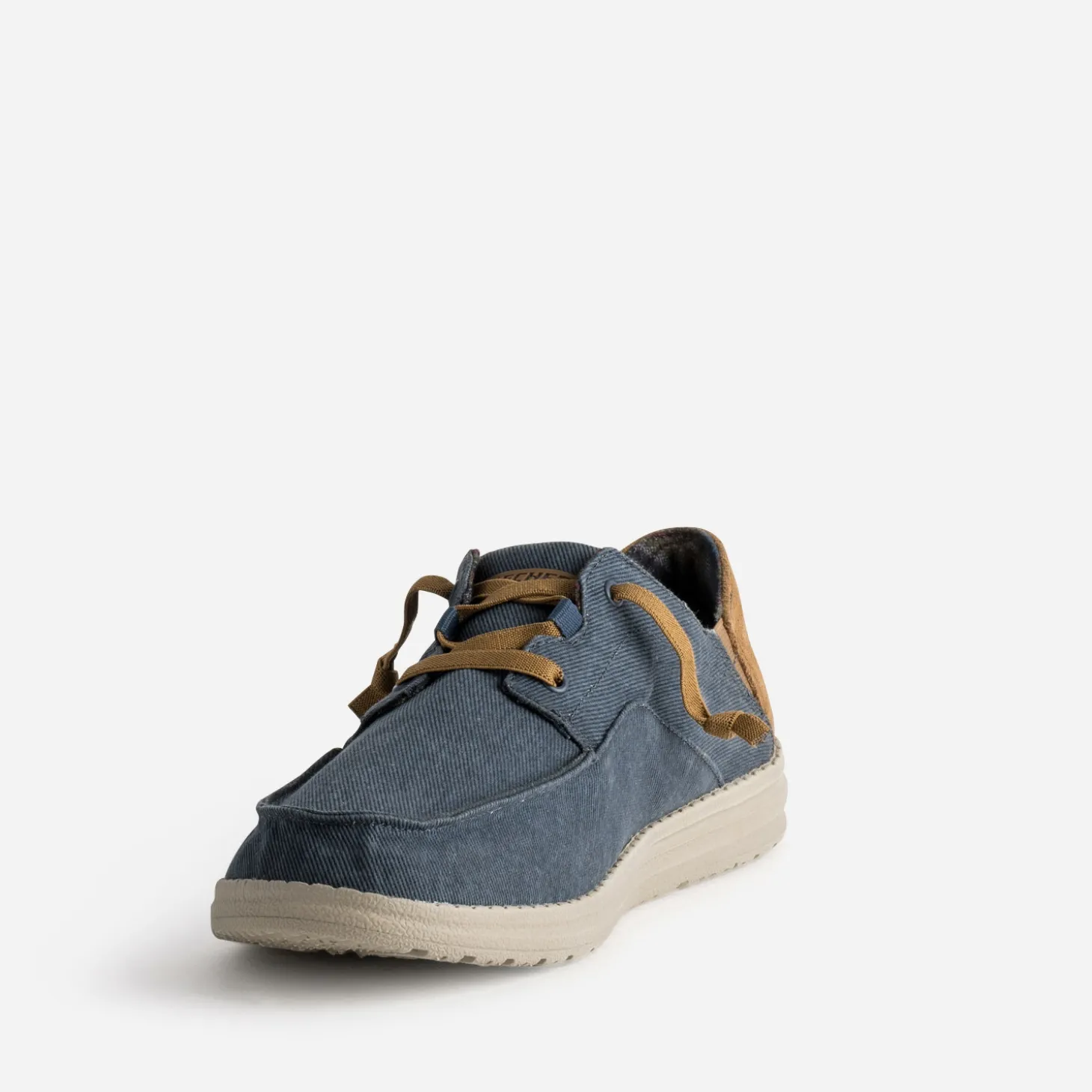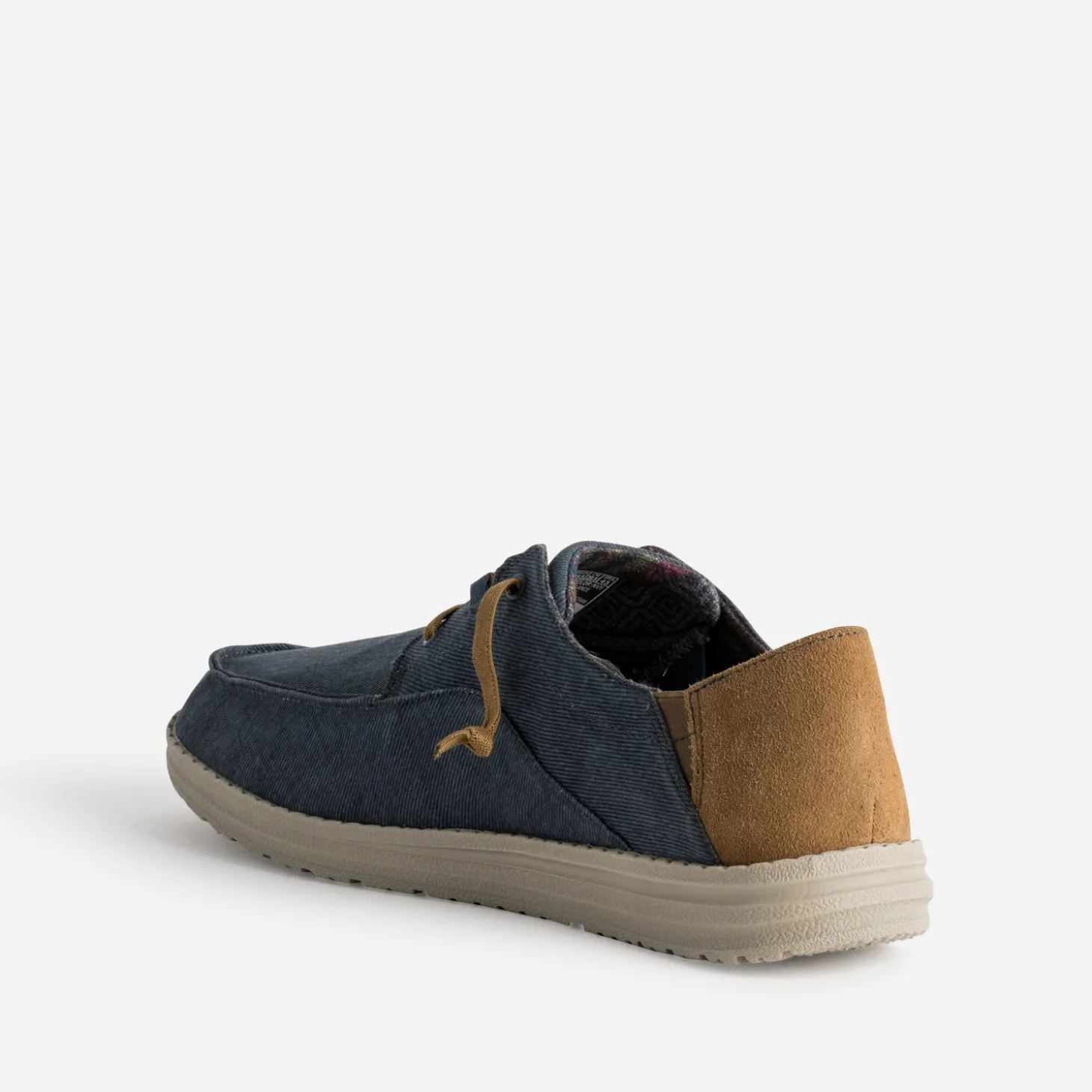 Décontraction étudiée pour ce derby hybride, monté sur une semelle sportswear. Son design Relaxed Fit® associe la toile à un empiècement en cuir velours camel, sur le contrefort. Bout mocassin, lacets élastiqués, semelle intérieure confortable Air-Cooled Memory Foam® infusée de charbon, un modèle de couleur marine, d’une grande légèreté, idéal pour vous suivre au quotidien.