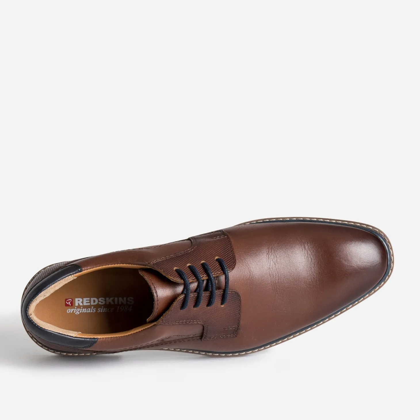 Laissez-vous tenter par le derby en cuir pour homme. Coloris cognac, il se laisse rehausser de touches bleu marine sur la trépointe, le contrefort et le lacet. Un modèle phare en toutes saisons, signature d’un style élégant et intemporel.