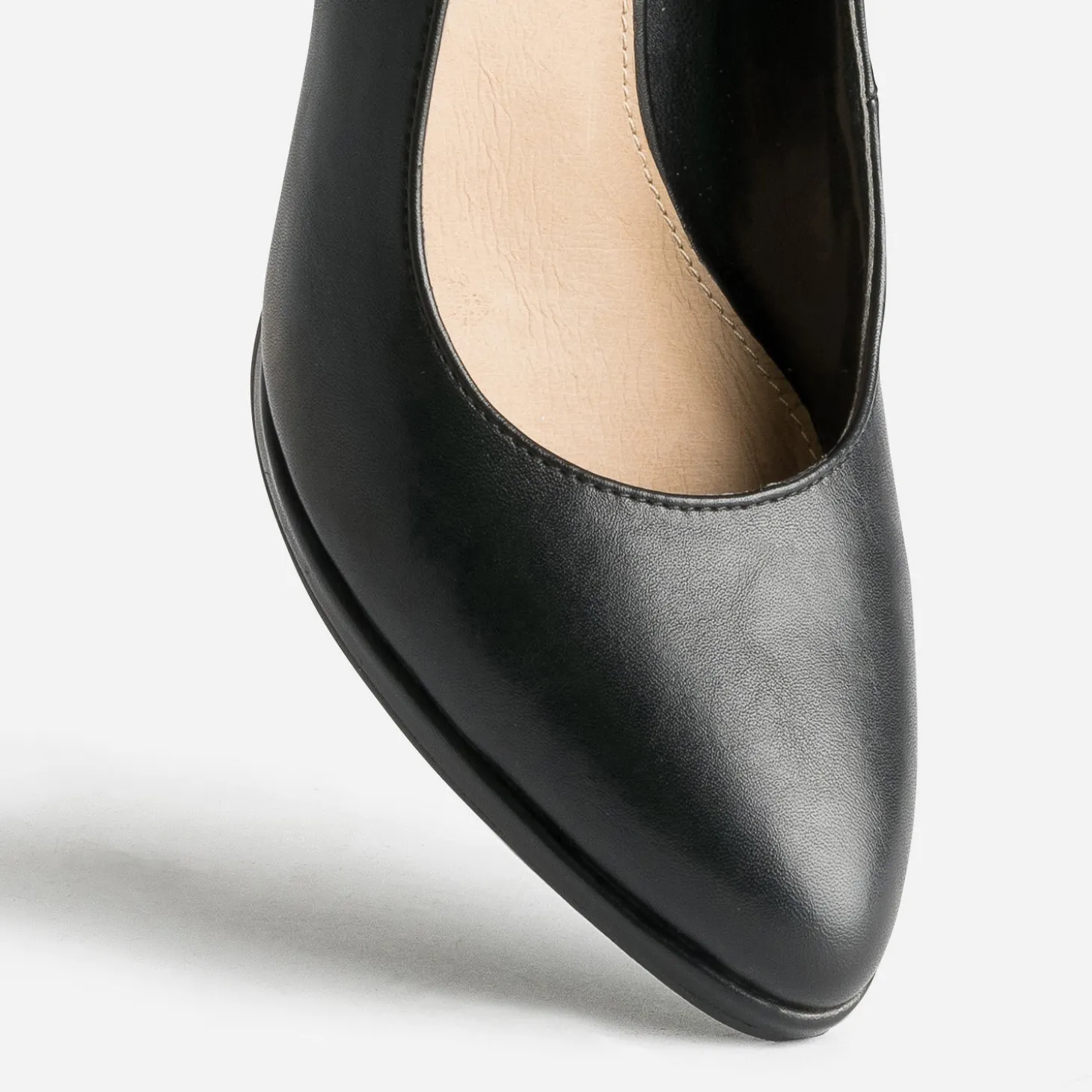 LA signature d’un look féminin, qu’il soit formel ou plus glam’, c’est l’escarpin. En matière synthétique noir, il est reconnaissable à son bout légèrement pointu, son décolleté sur le cou-de-pied et son talon fin de 8,5 cm. Essayez cette nouvelle version, dotée d’un patin avant de 0,5 cm et d’une fine bride à la cheville. Noir, il se marie autant avec un uniforme qu’avec une chemise blanche et une jupe crayon.