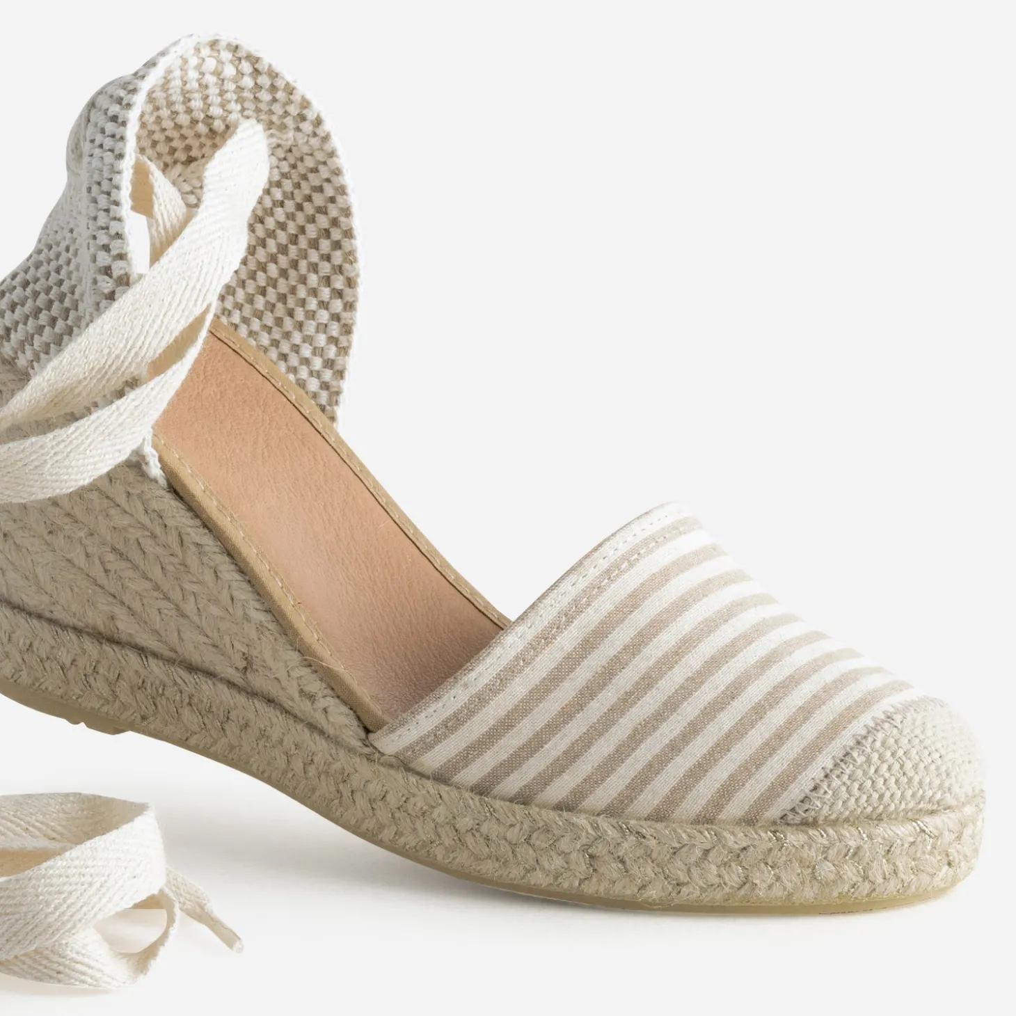 Soyez le premier à laisser votre avis sur “Espadrille compensée écrue toile rayée taupe” Annuler la réponse