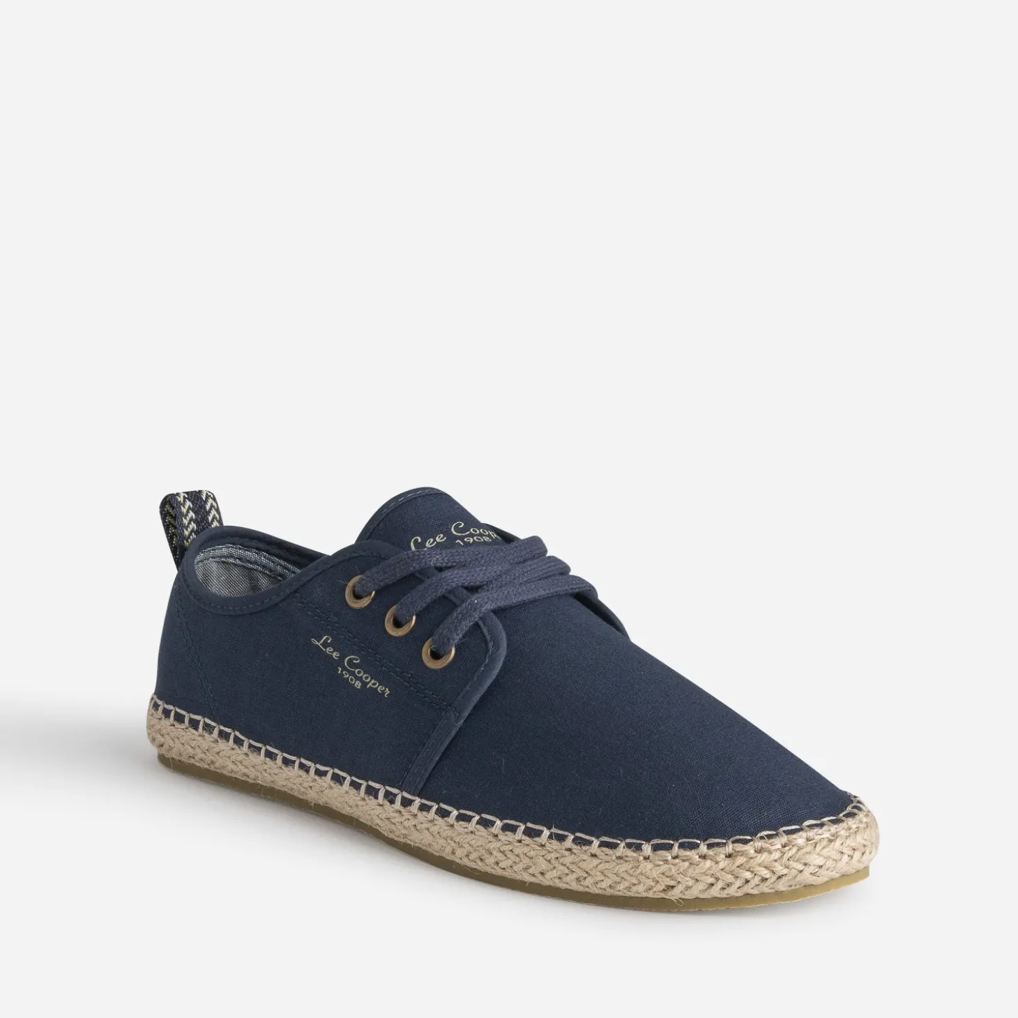 Appréhendez l’été sans compromettre votre style, avec cette chaussure hybride, mix parfait entre la tennis et l’espadrille. Confectionnée en toile bleu marine, avec doublure et première bleu chambray, elle est montée sur une semelle imitation crêpe, soulignée de corde naturelle. Un galon fantaisie placé sur le contrefort facilite l’entrée du pied. Un modèle à privilégier avec un tee-shirt ou une chemise légère et un bermuda beige ou kaki, en mode vacances.