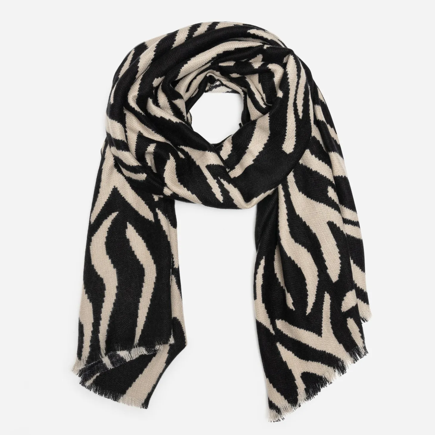 Duo de noir et beige pour cette maxi étole pour femme. Inspiration motif animalier, elle assure une touche ultra mode à toutes les tenues.