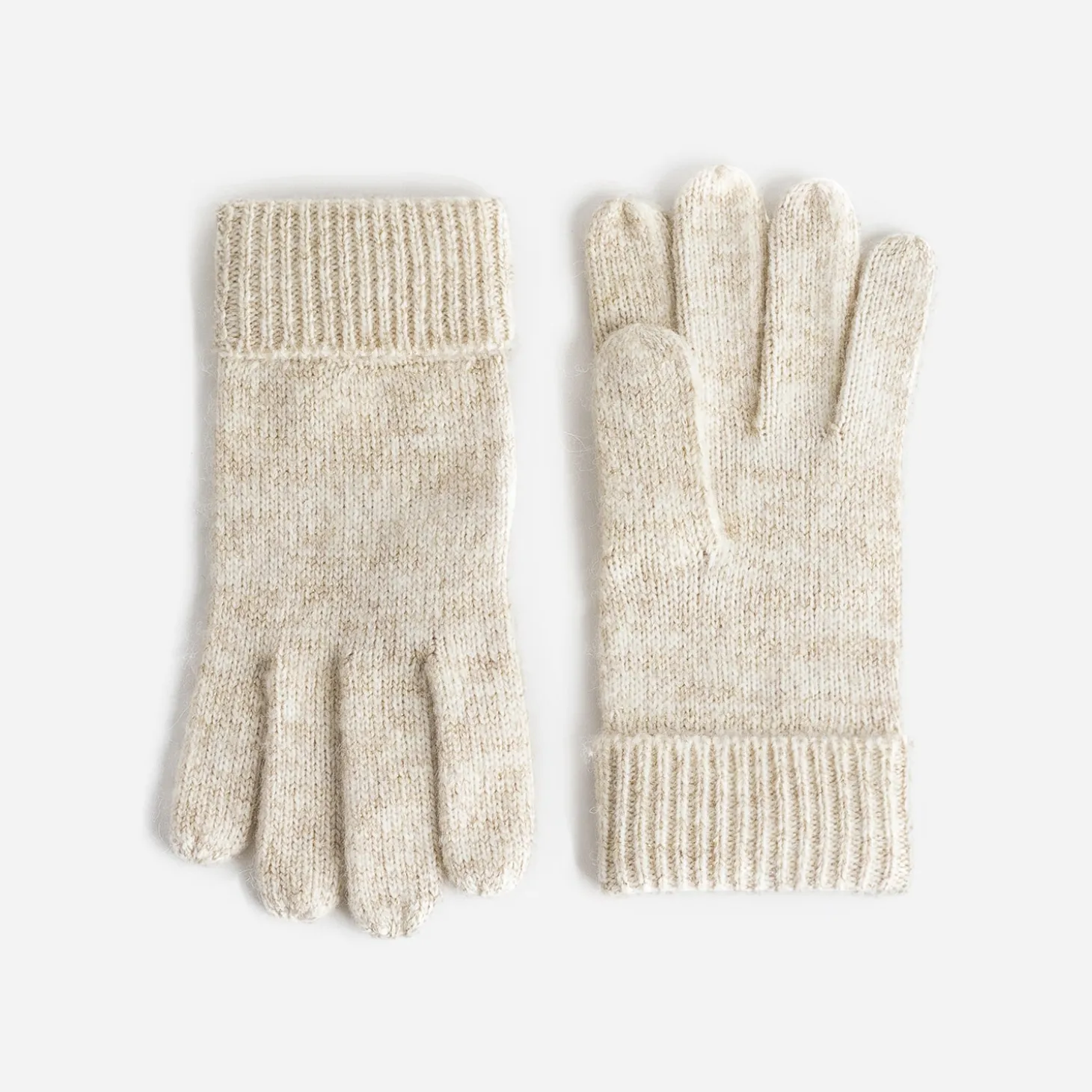 Bien au chaud jusqu’au bout des doigts, c’est la promesse de ces gants en tricot. Beige chiné, il s’anime de touches lurex dorés, avec revers en bords-côtes aux poignets. A porter avec un look dans les teintes naturelles.