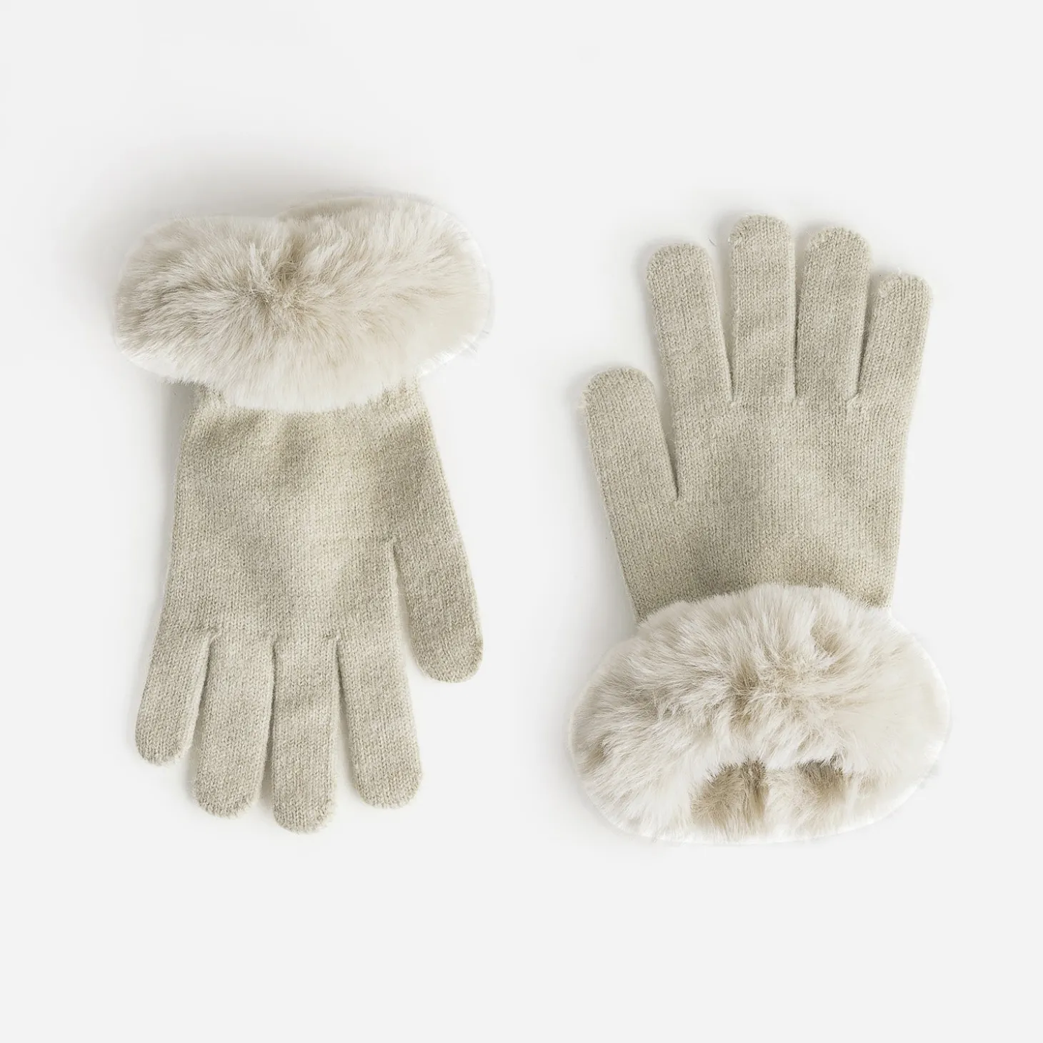 Gants beige tricot détail fourré