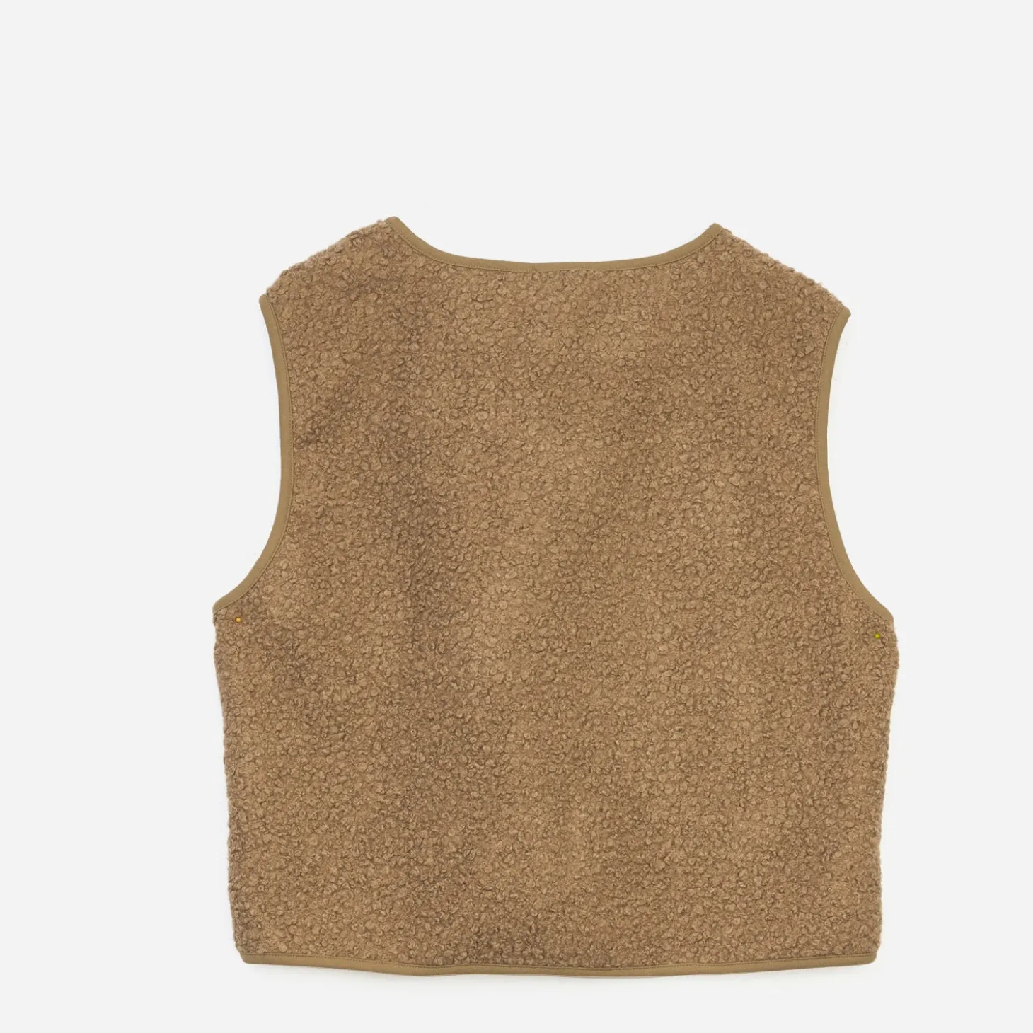 Vous connaissez le layering ? C’est une tendance qui consiste à superposer les vêtements, avec un style étudié. Le gilet sans manches n’y fait pas exception : en textile sherpa camel façon bouclette, il vient réchauffer les looks de la saison. Un modèle à associer avec des teintes naturelles et des matières cosy.