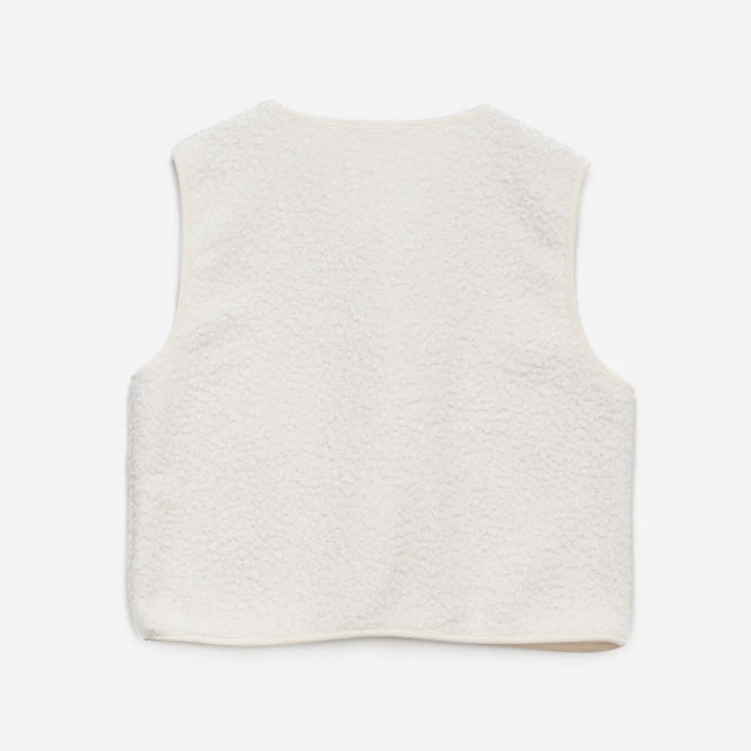 Vous connaissez le layering ? C’est une tendance qui consiste à superposer les vêtements, avec un style étudié. Le gilet sans manches n’y fait pas exception : en textile sherpa écru façon bouclette, il vient réchauffer les looks de la saison. Un modèle à associer avec des teintes naturelles et des matières cosy.