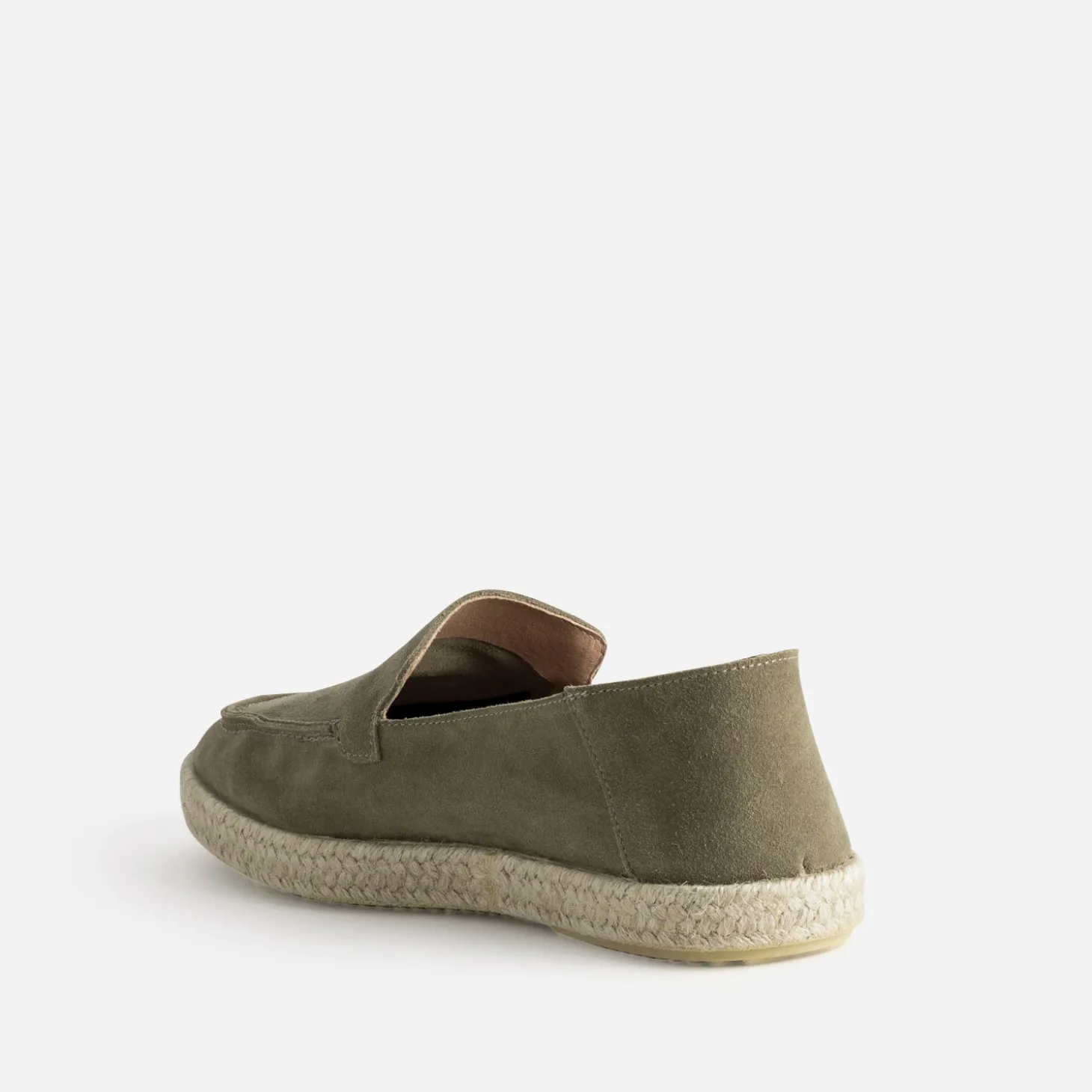 Mocassin kaki cuir velours semelle corde