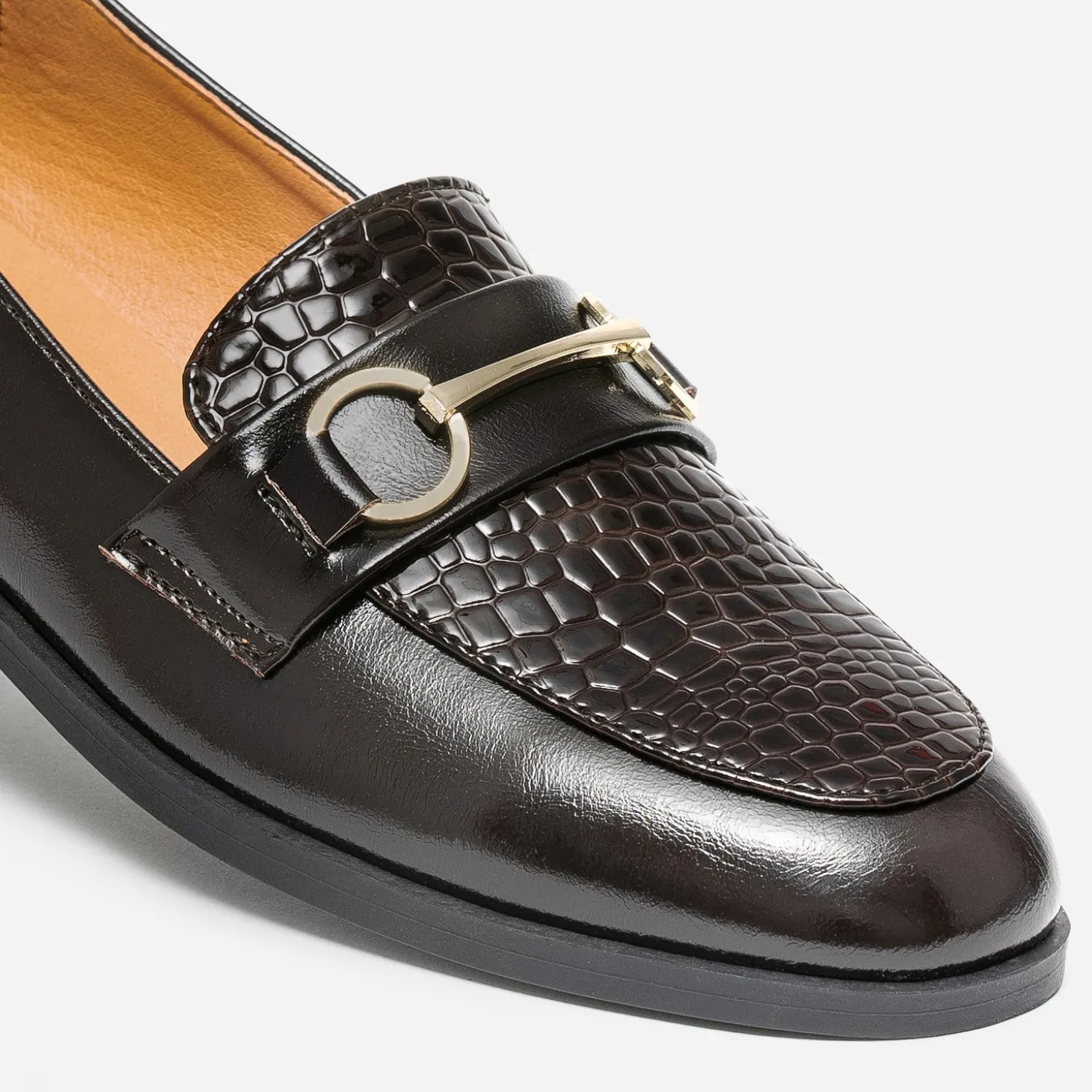 Mocassin marron verni embossé effet python