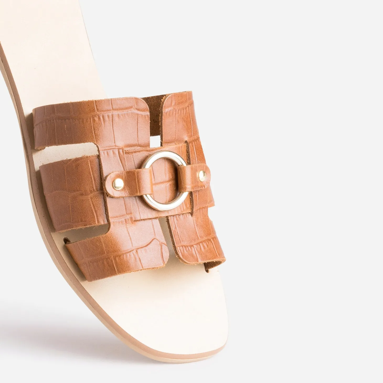 Avec sa large brique unique, cette mule assume un pouvoir mode irrésistible cette saison. En cuir cognac embossé croco, non doublé avec première synthétique, elle présente un anneau en métal doré sur le dessus. Un modèle si facile à porter, que vous ne pourrez plus vous en passer.