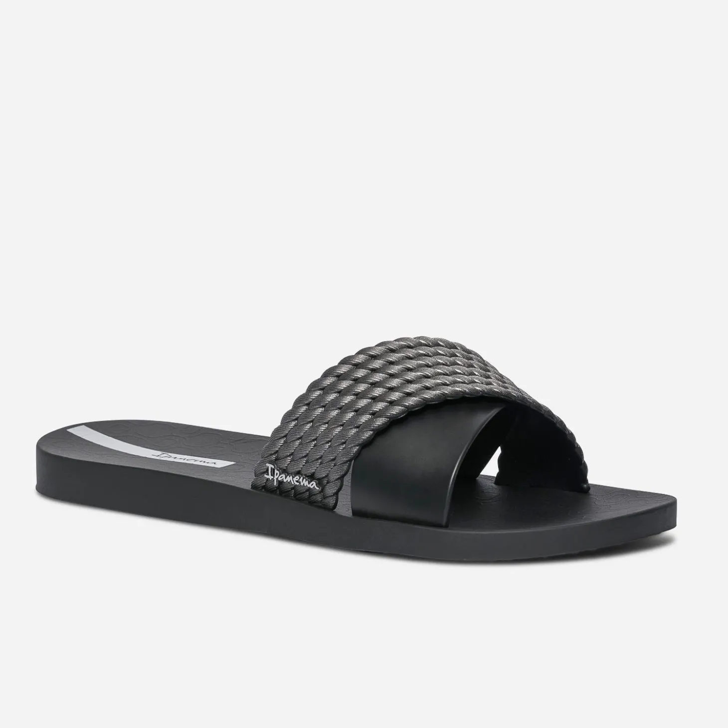 IPANEMA est le nom d’une des plus célèbres plages du monde, située à Rio de Janeiro, au Brésil. Elle inspire le nom d’une marque de sandales et de tongs, portée par le spectacle incroyable des côtes brésiliennes. Cette mule pour femme se démarque par deux larges brides sur le dessus du pied : l’une lisse et l’autre reliefée façon tressage. Un modèle décliné en coloris noir, à privilégier avec un look sportswear ou décontracté.