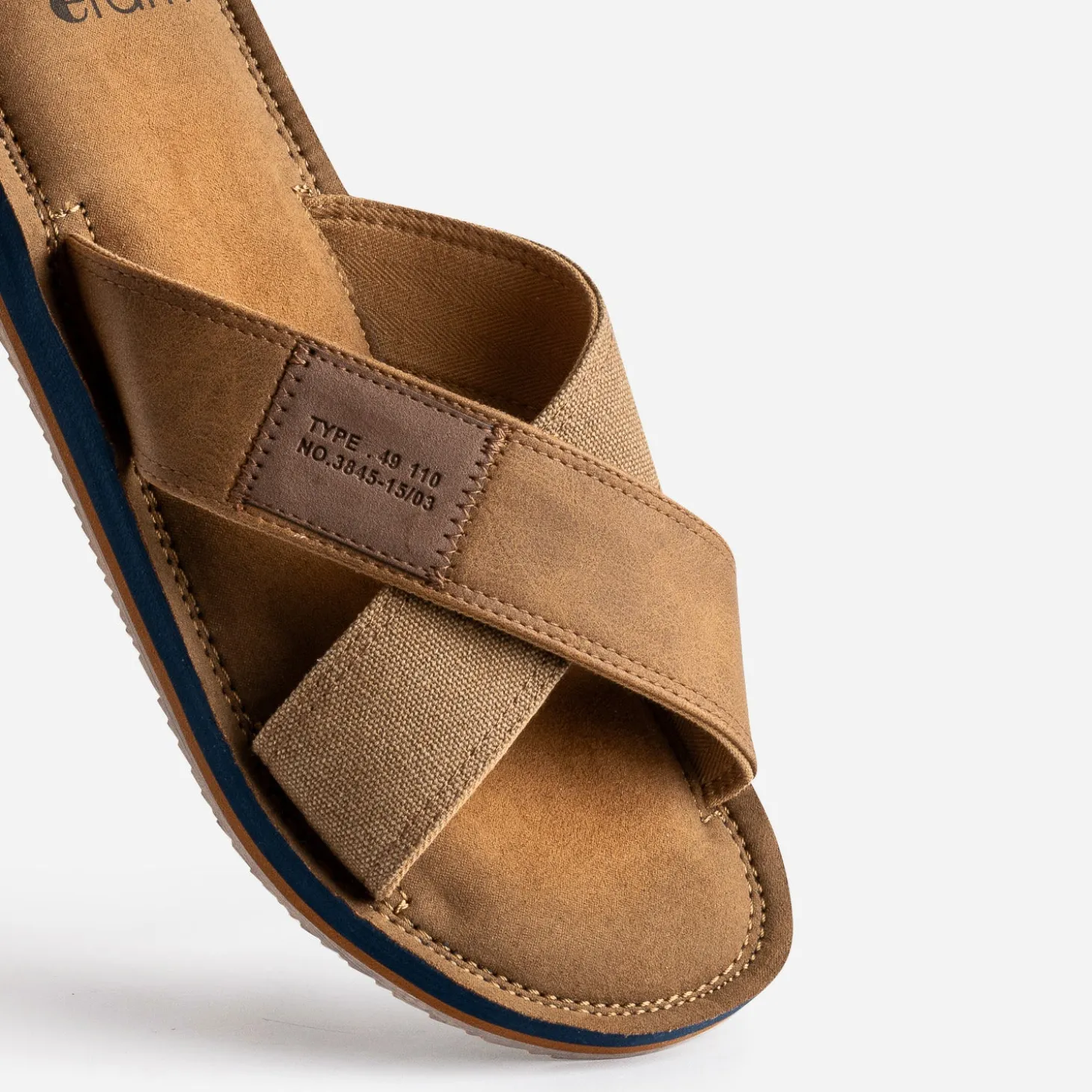 Une large bride en textile. Une large bride en matière synthétique lisse. Cette mule ne sort qu’aux beaux jours. A dominante marron, elle est montée sur une semelle bleu marine et terracotta. Un modèle à réserver aux looks de vacances.