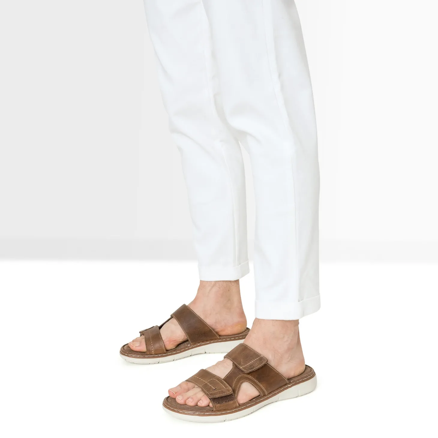 Mule marron en cuir à scratchs